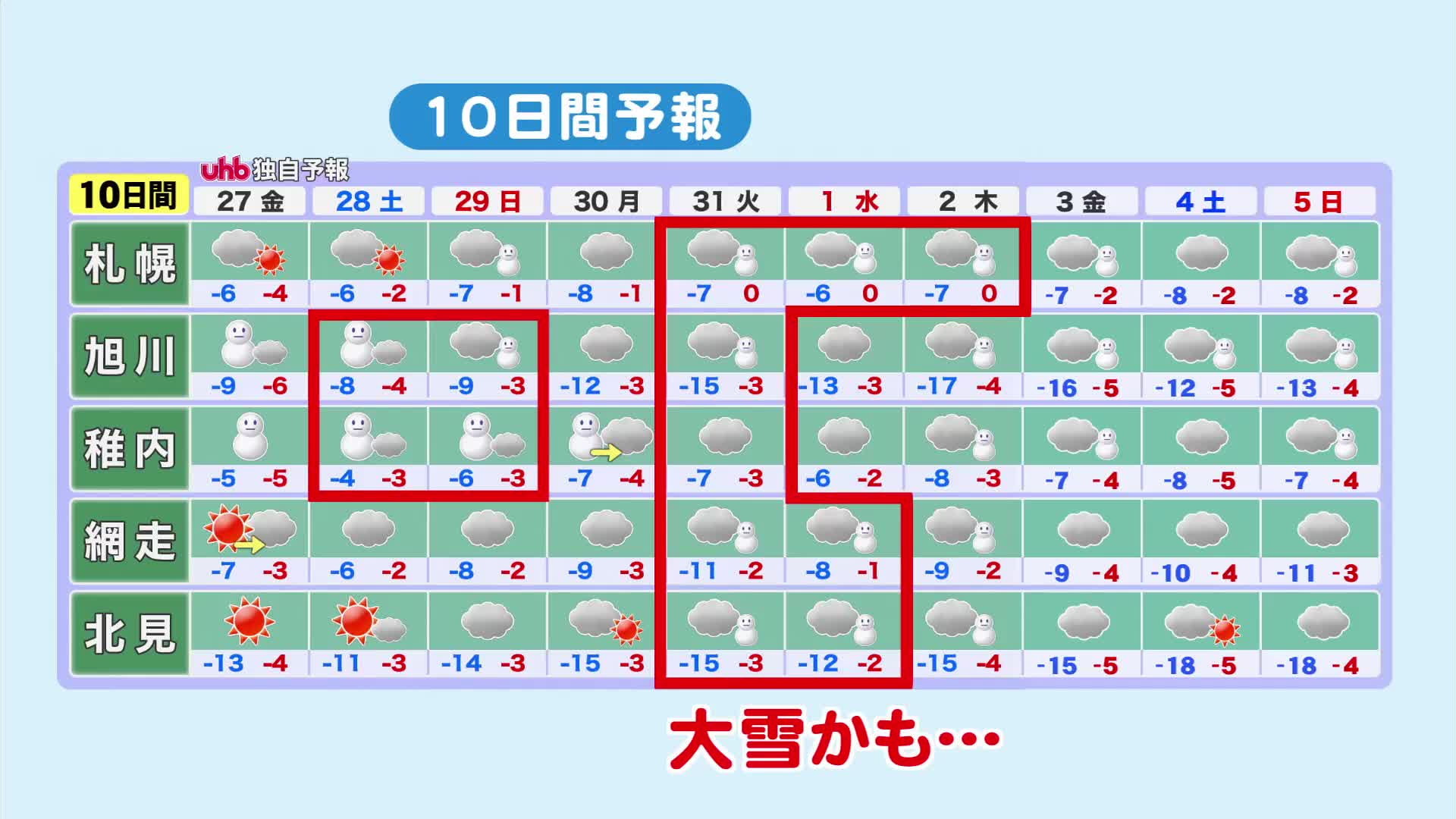 最高気温は札幌でー4℃、旭川はー6℃です。