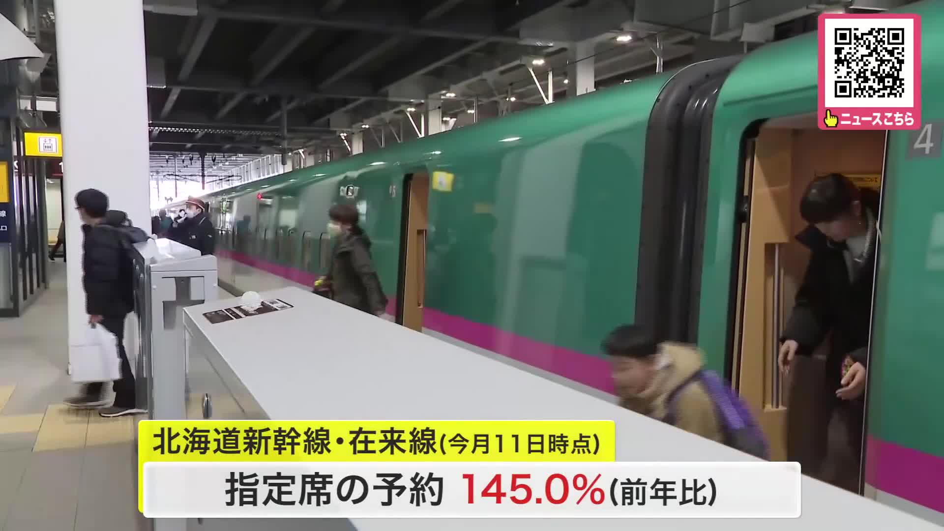 「おばあちゃんに会って一緒に遊びたい。雪だるまを一緒に作る」北海道新幹線と在来線の指定席の予約は前年に比べ145%で北海道の新函館北斗駅は混雑&久しぶりの再会望む人たちの笑顔あふれる