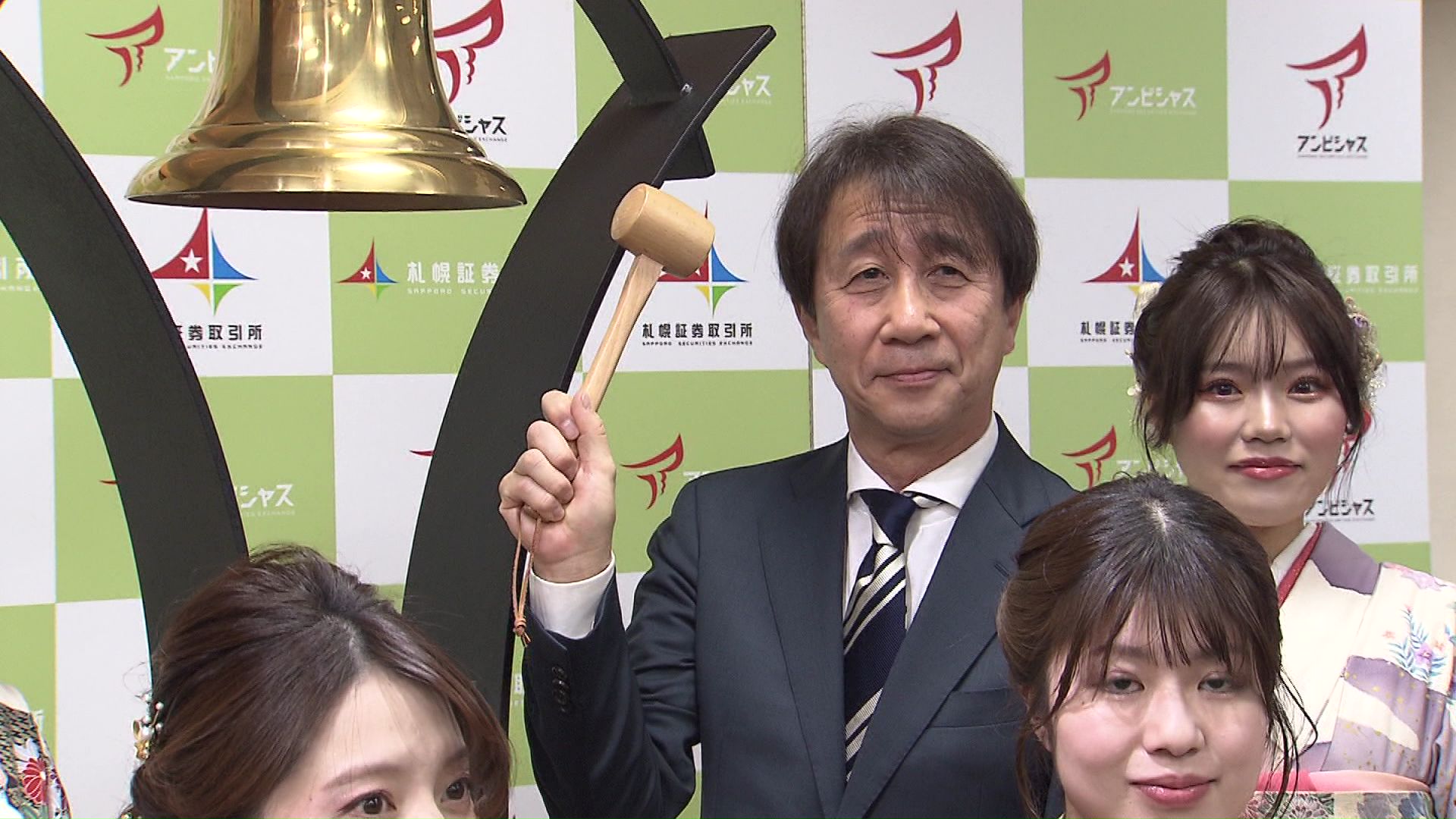 札幌証券取引所で6日午前、スキージャンプ金メダリストで全日本スキー連盟の原田雅彦会長が取引開始を告げる鐘を打ち鳴らしました。