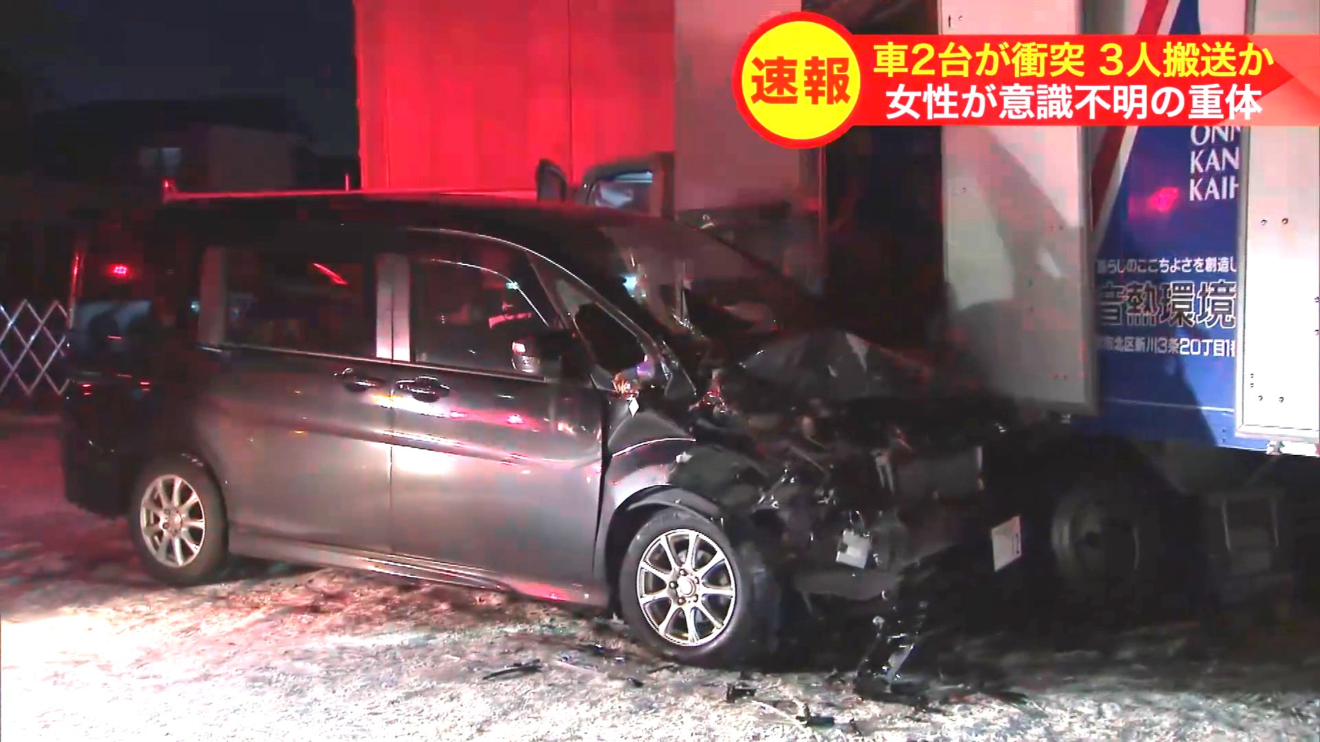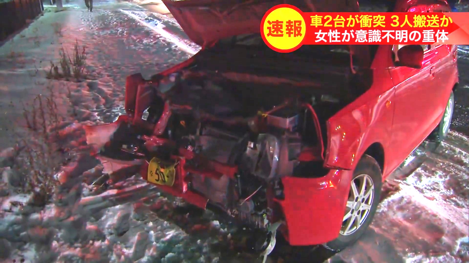 右折した軽乗用車が対向車線の直進車と衝突…計3台が絡む多重事故に―小学校低学年の男児を含む3人搬送 女性1人が死亡
