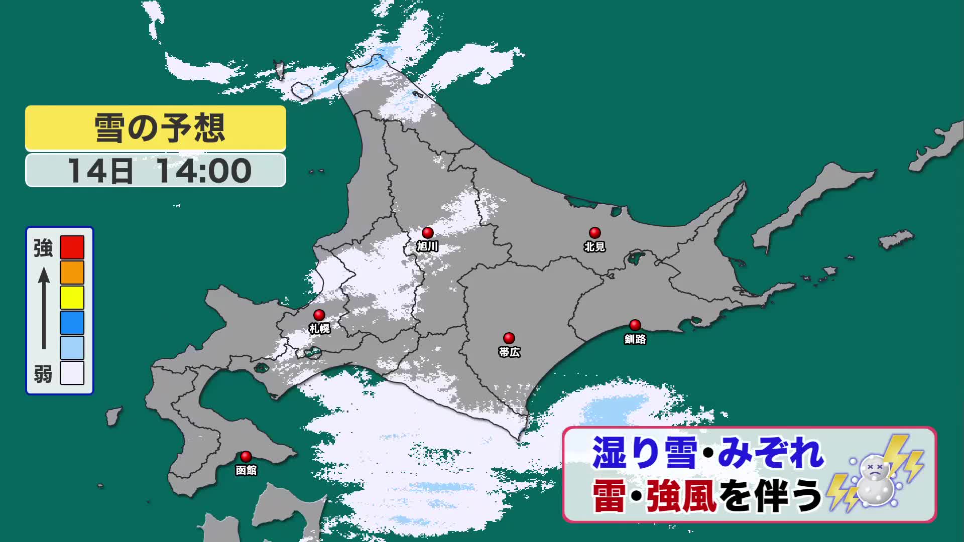 午後は、道南や太平洋側西部で湿った雪やみぞれが降るでしょう。