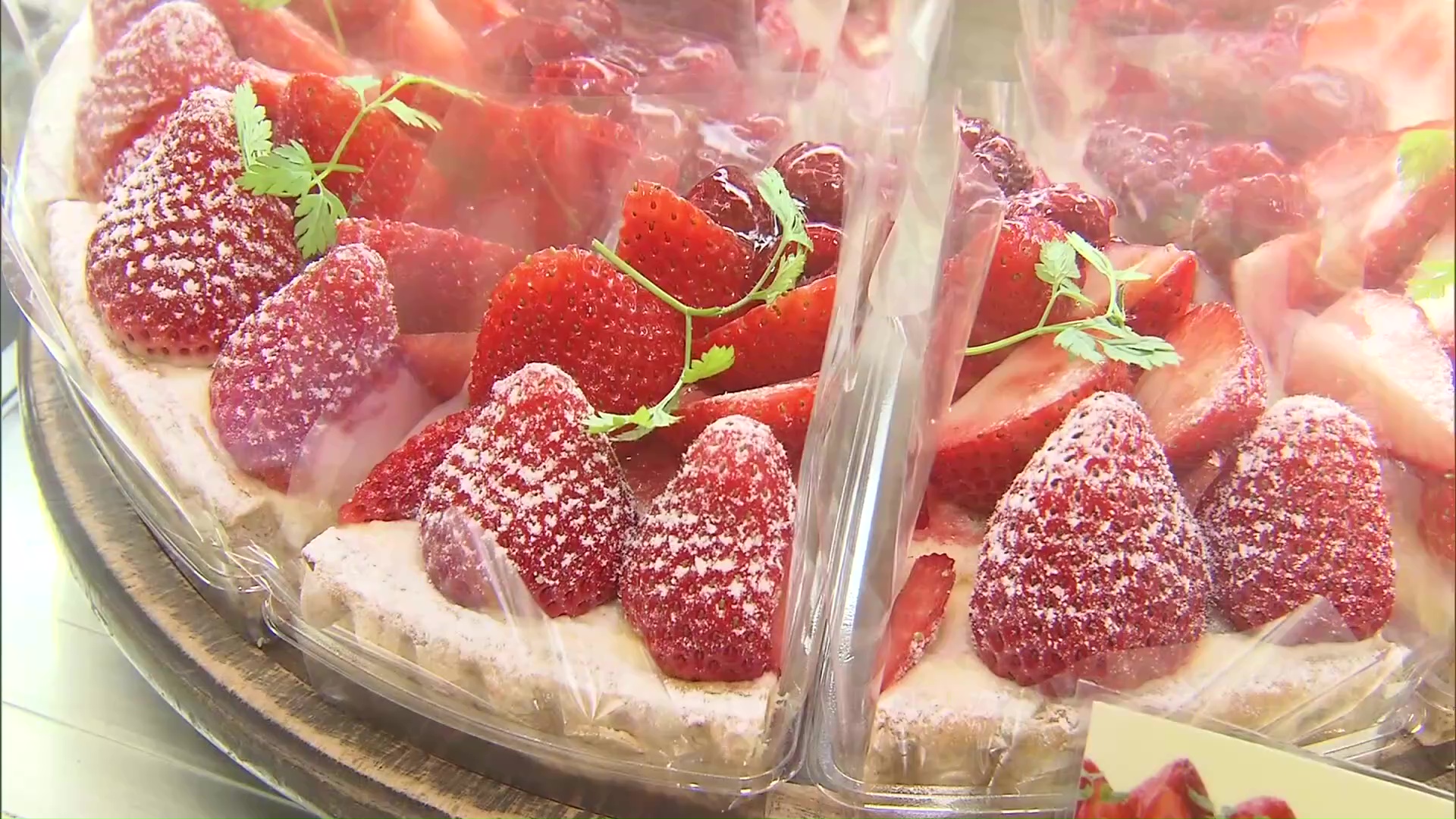 「こちらはロールケーキでおなじみ『堂島ロール』いちごが登場しています。まるっといちごが入ってかわいいです」(狐野アナウンサー)