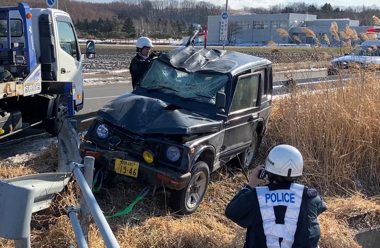 現場は丁字路の交差点付近で、警察が駆けつけた際、路面は乾燥していました。