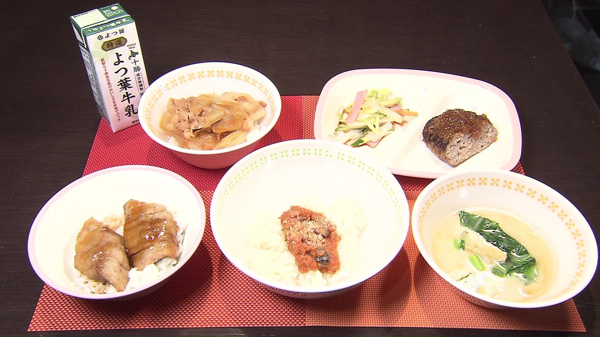 そのメニューは、北海道学校給食コンクールで最優秀賞に輝いた新十津川町の「ナストマライス」や「白菜サラダ」をはじめ、畜産も盛んな帯広市の「牛トンすき焼き丼」と「じゃがいもと小松菜のみそ汁」。