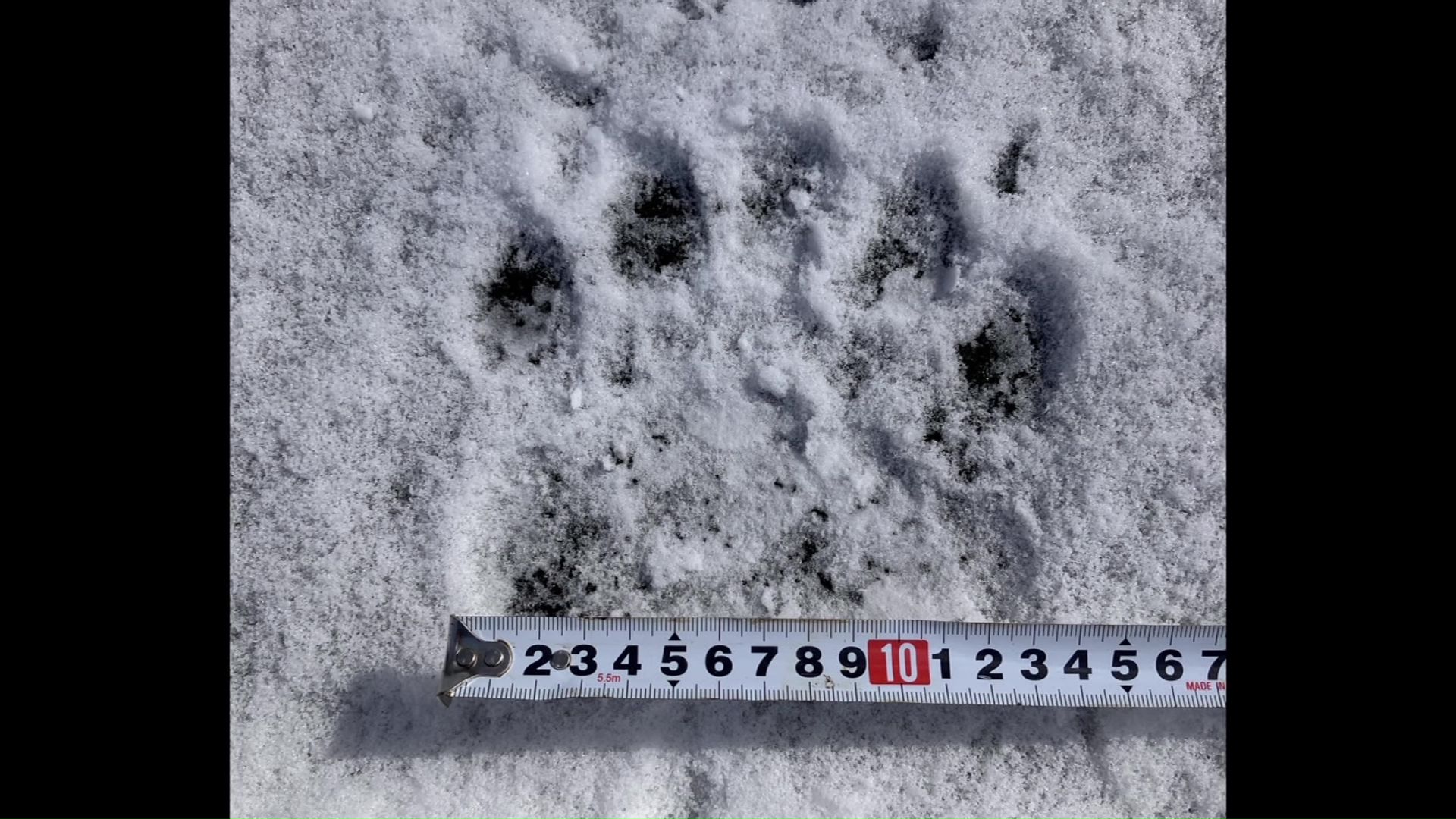 足跡の幅は13センチから14センチほどで、近くの山に向かって続いていました。