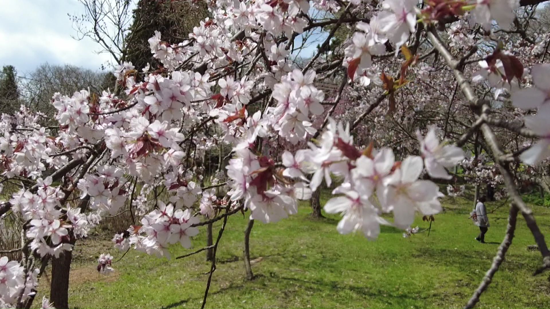 エゾヤマザクラ、ソメイヨシノ、シダレザクラ、御衣黄(ぎょいこう)など様々な種類があり、長く花見を楽しめます。