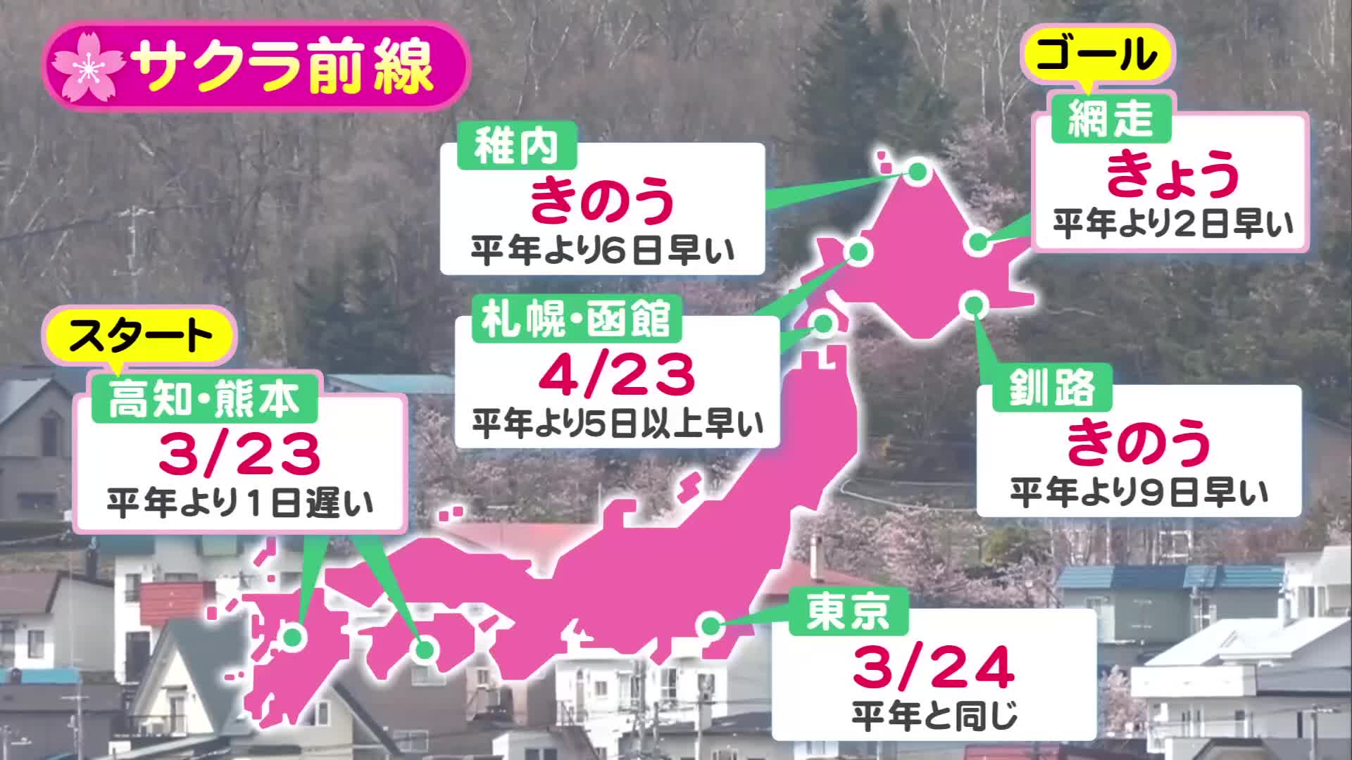 午後は天気急変…急な雷雨に注意を!網走でサクラ開花 約1か月半で桜前線はゴール【北海道の天気 8日(木)】