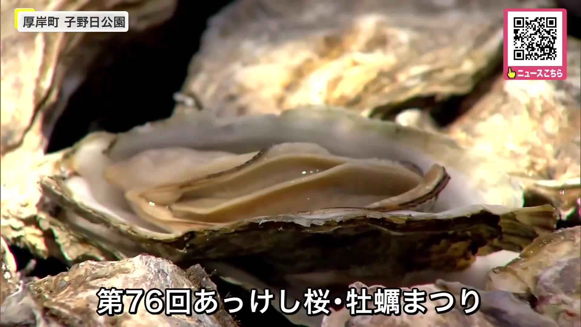 北海道東部の厚岸町で桜とカキを一緒に楽しむ「まつり」が開かれ、にぎわいを見せています。
