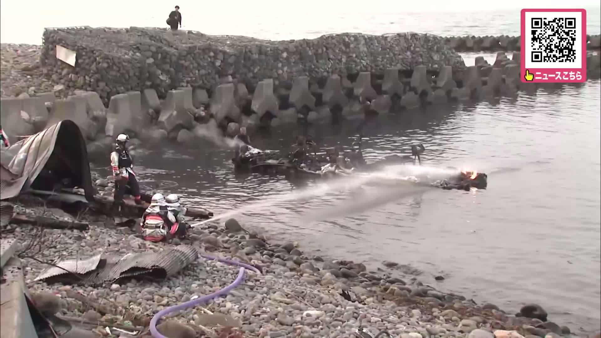 その後の調べで、焼けた番屋内で漁船のモーターのバッテリーが置かれていた場所の焼け方が激しいことが分かりました。