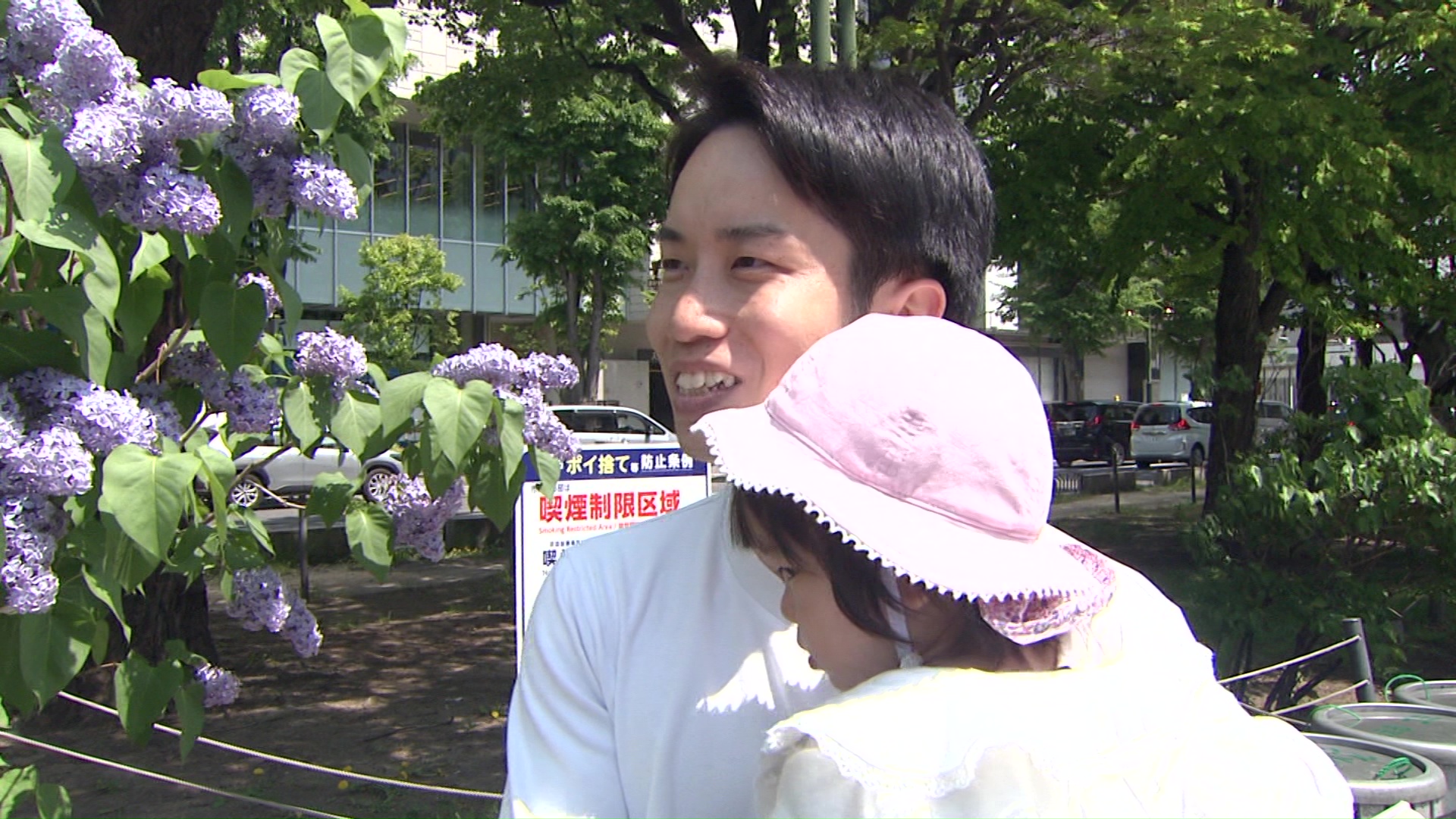 鈴木直道北海道知事の応援を受けた自民党の現職、岩本剛人さん。
