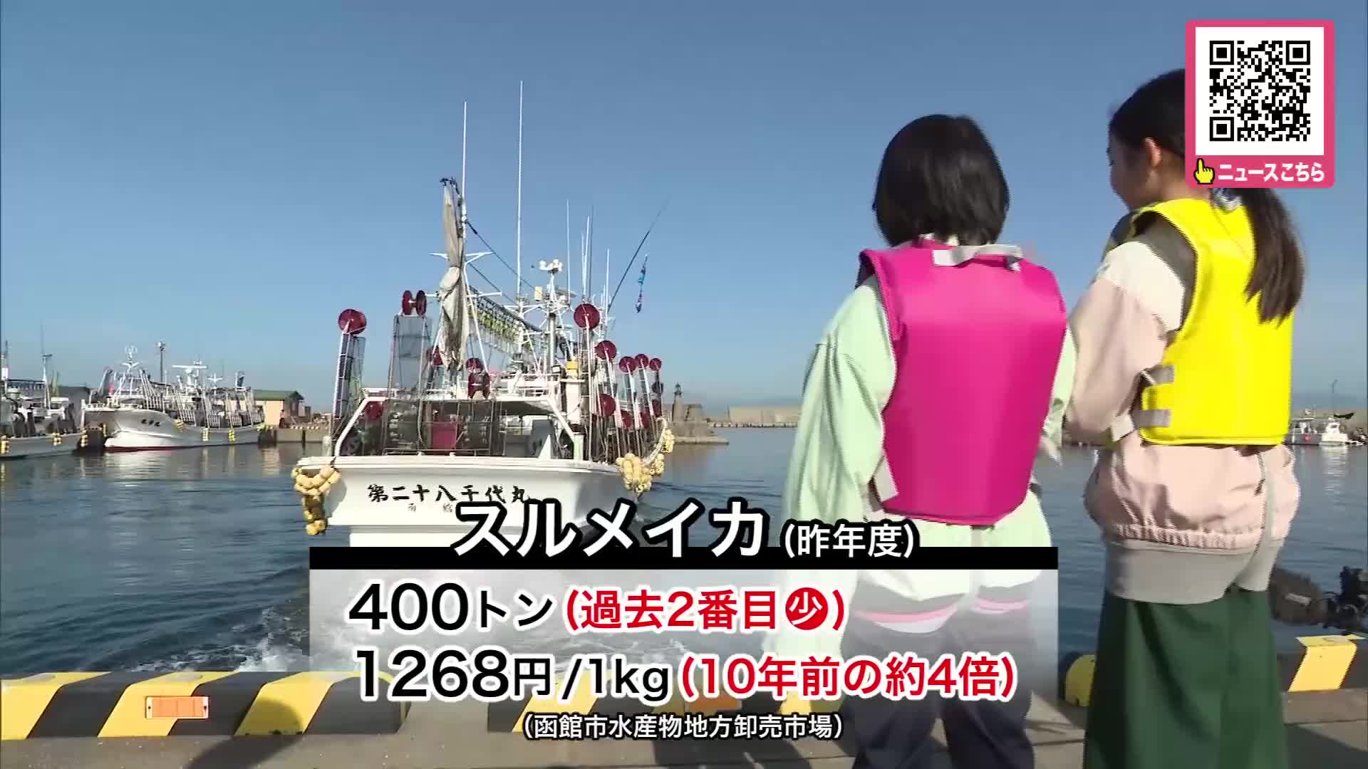 函館での2024年度のスルメイカの取扱量は400トンで、過去最悪だった2023年度に次いで2番目の少なさ。