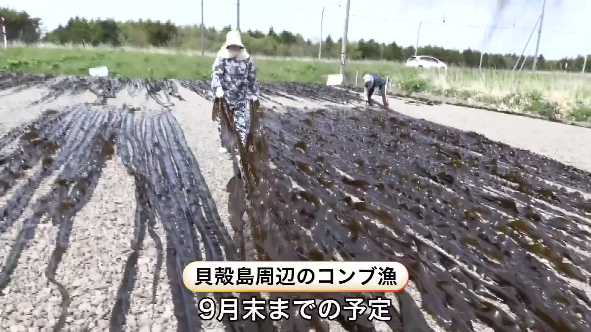 貝殻島周辺のコンブ漁は9月末まで行われます。
