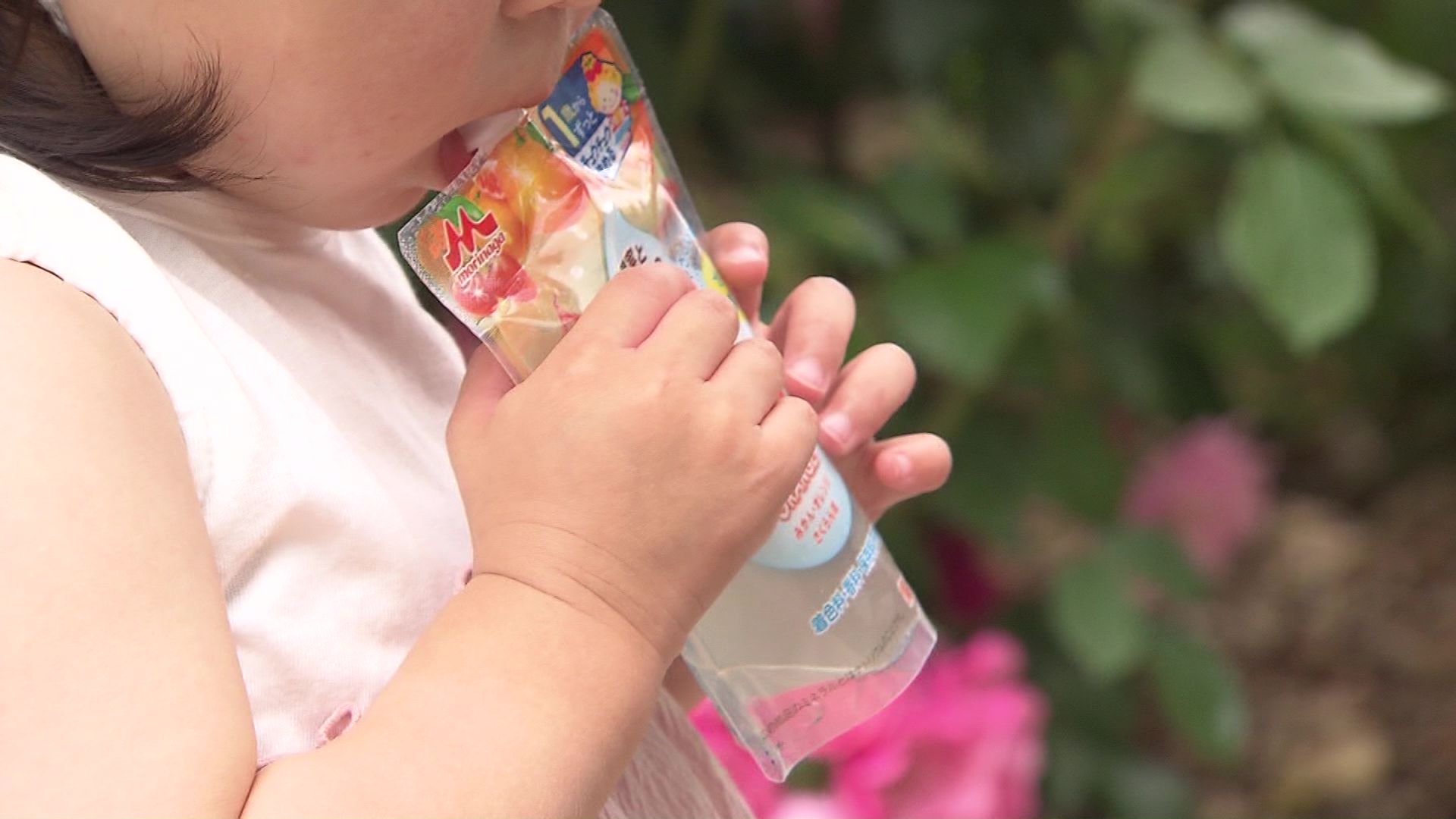 「子どもが飲む用のゼリーを持ってきた。暑い時に飲ませている。ちょっと歩いたら飲む」