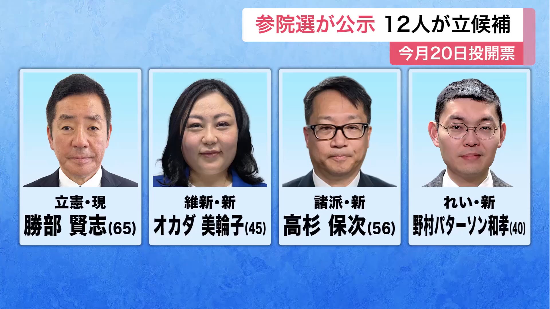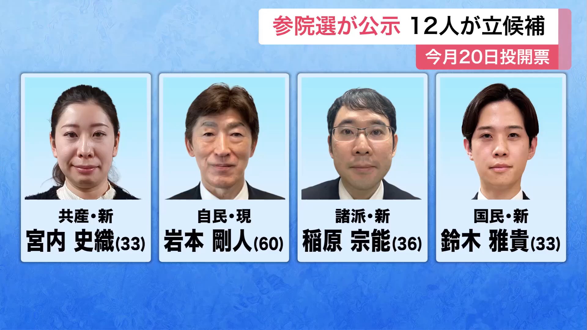 【参院選・北海道選挙区】"3議席"めぐり現職・新人あわせて12人が立候補_物価高対策・減税・コメ問題・子育て支援など論戦へ_期日前投票は7月4日から_投開票は7月20日