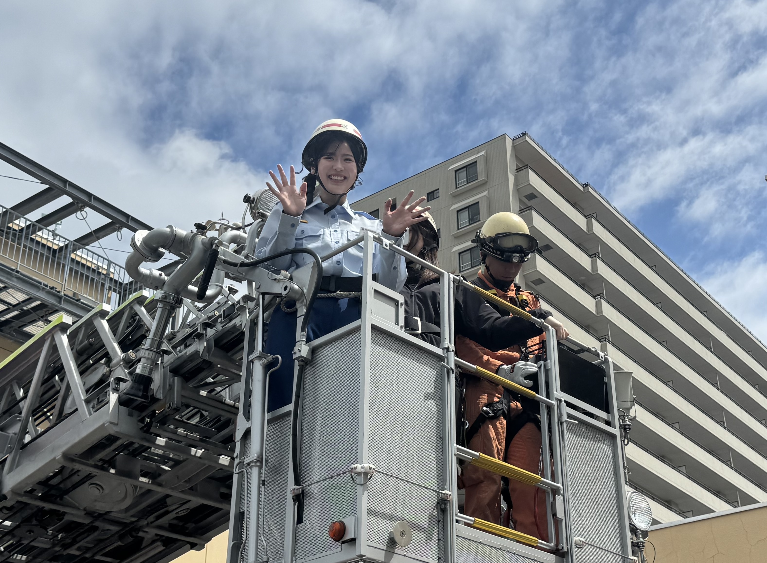 7月11日午前、北広島市消防署で行われたイベントでは、滝谷さんが消防職員の手帳点検を行ったほか、はしご車体験や煙ハウスでの避難訓練などが実施されました。
