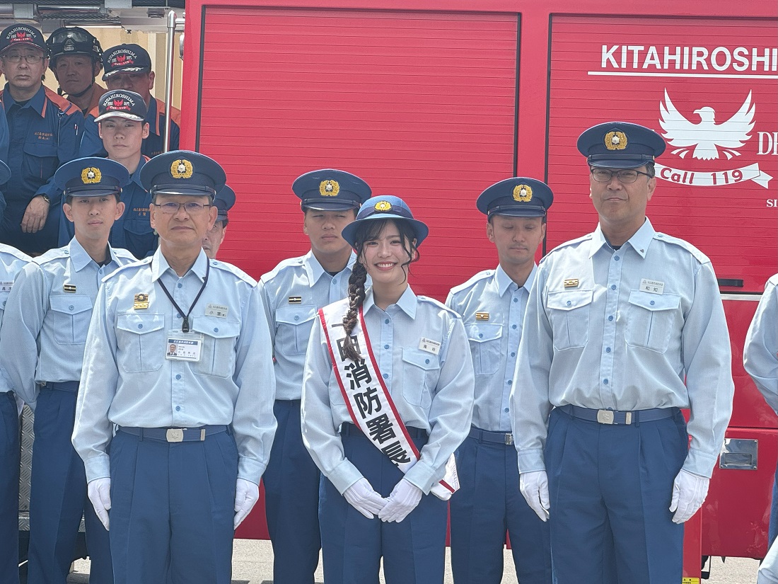 タレントでFビレッジアンバサダーとしても活躍中の滝谷美夢さんが、北海道北広島市で「1日消防署長」として、火災予防を呼びかけました。