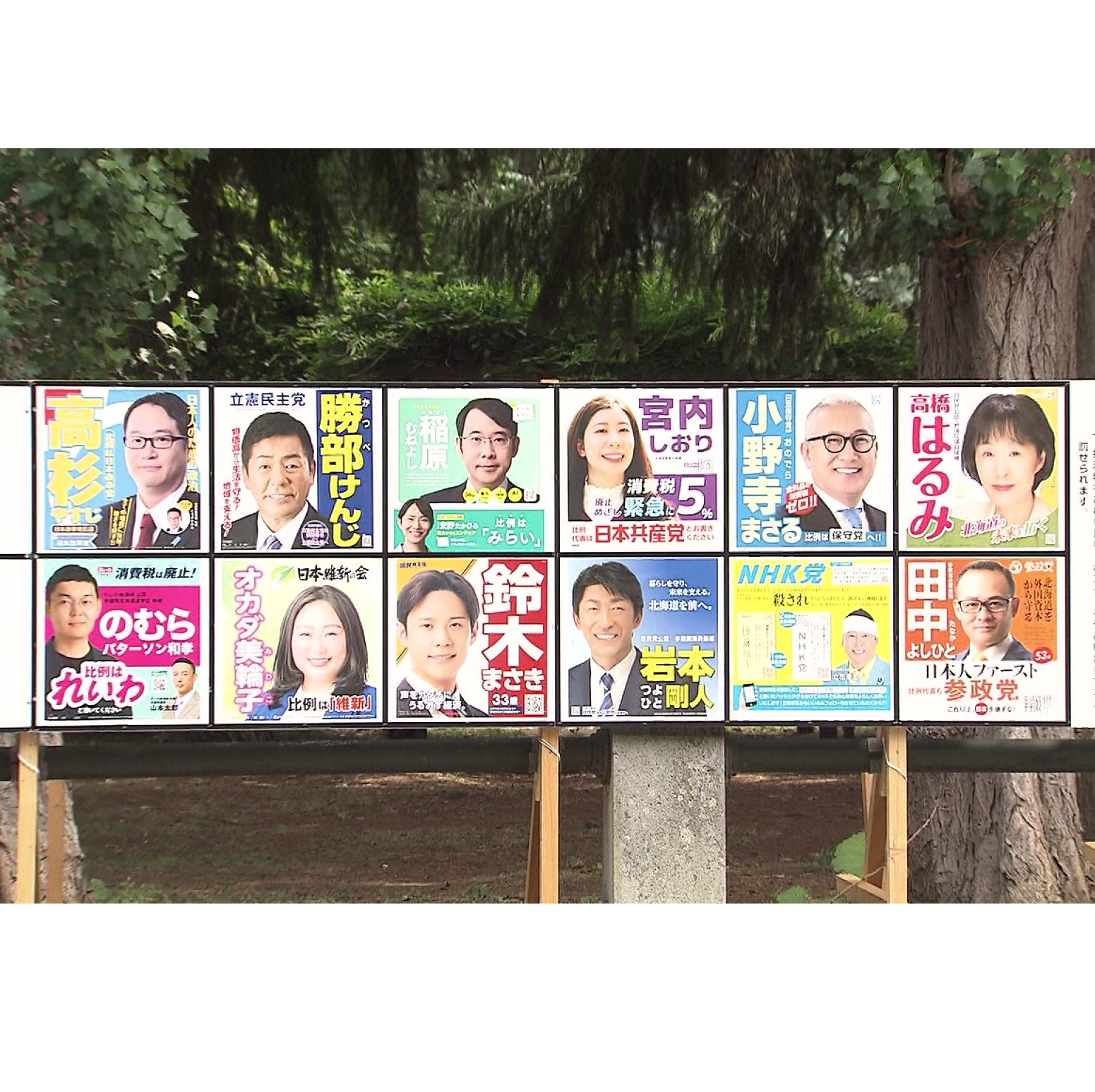 いずれも新人で、保守党の小野寺秀さん、共産党の宮内史織さん、維新のオカダ美輪子さん、れいわの野村パターソン和孝さん、諸派の後藤朋子さん、諸派の稲原宗能さん、諸派の高杉保次さんは厳しい戦いとなっています。