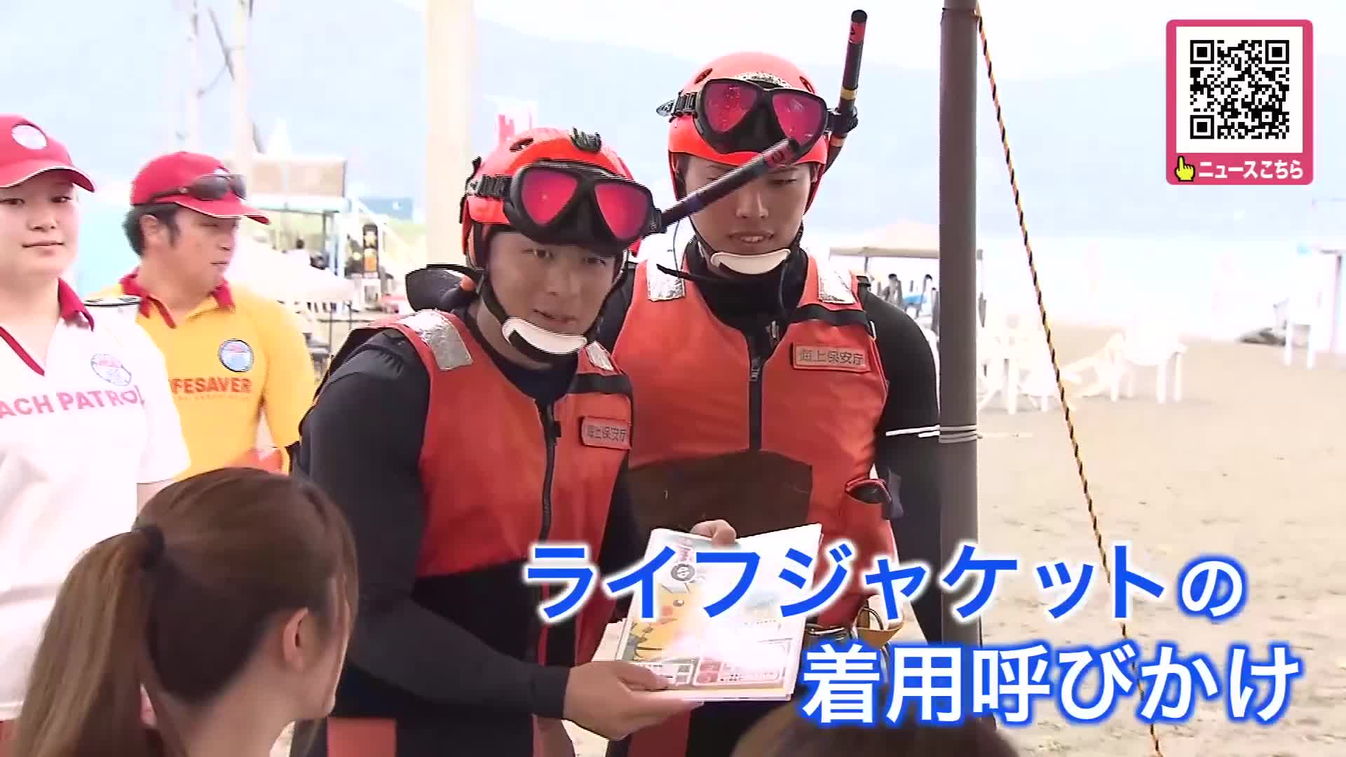 ライフセーバーと合同で海水浴客にライフジャケットの着用などを呼びかけました。