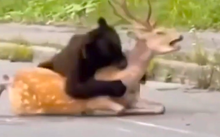【ヒグマ速報】巨大なエゾシカを背後から襲う怪力グマ_車が行きかう国道で衝撃シーン…夜ごとスイカやメロンを食い荒らす忍者グマの姿を暗視カメラがキャッチ_個体数が増えすぎて出没止まらない北海道