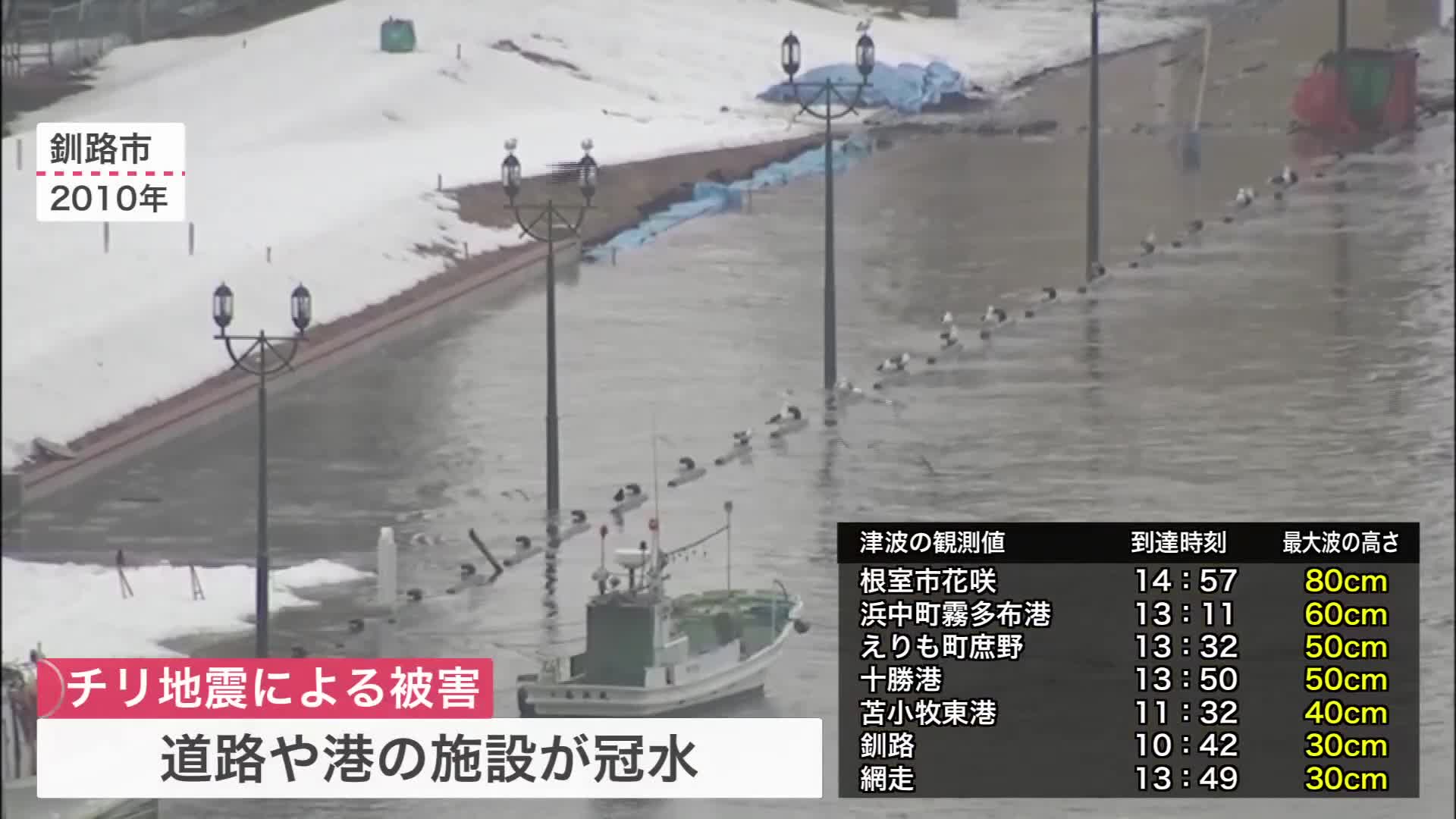 2010年2月27日、南米・チリで地震が発生し道内では翌28日に太平洋沿岸の東部で92センチ、中部で67センチ、西部で53センチなどの津波を観測しました。