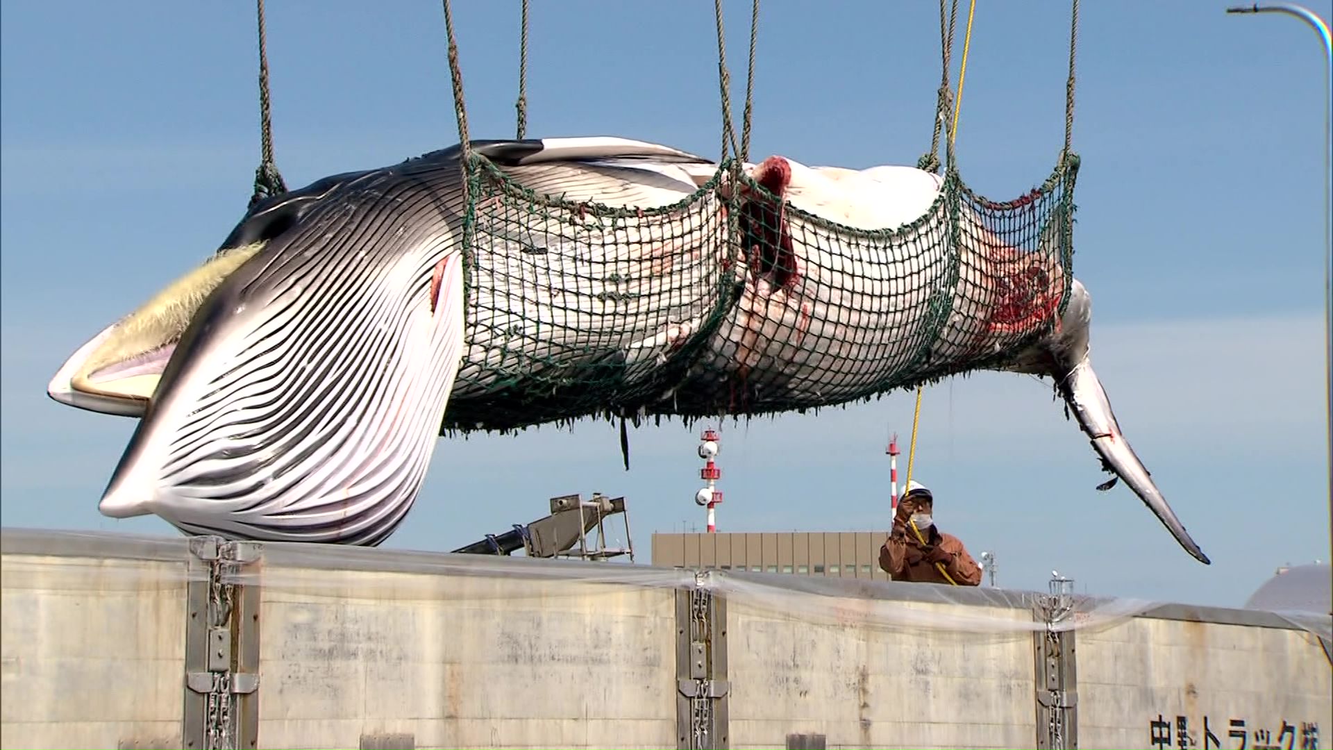 北海道の釧路沖で「商業捕鯨」始まる_体長7.9メートル・重さ5.4トンのミンククジラを初水揚げ_市内の鮮魚店などで販売へ_商業捕鯨は10月末まで