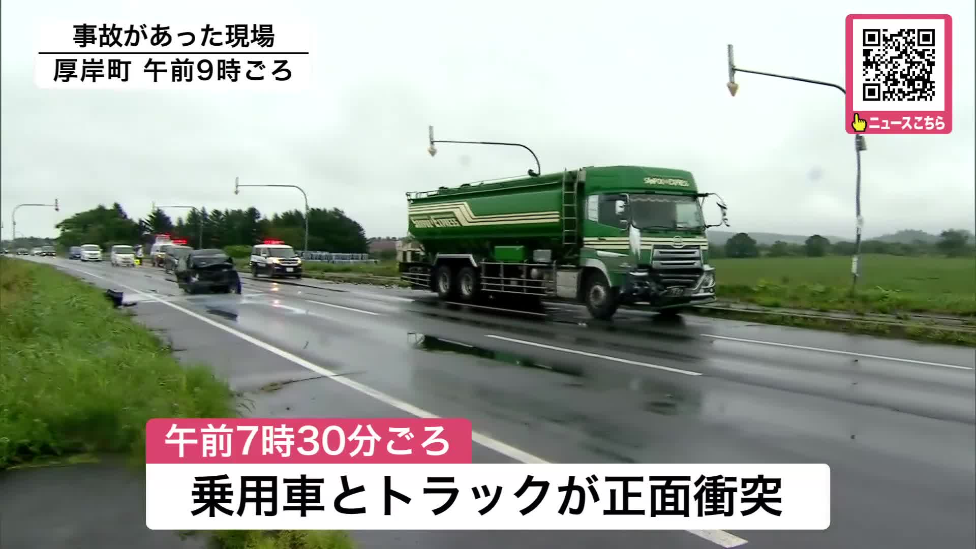 事故があったのは厚岸町尾幌の国道44号で、23日午前7時30分ごろ乗用車とトラックが正面衝突しました。