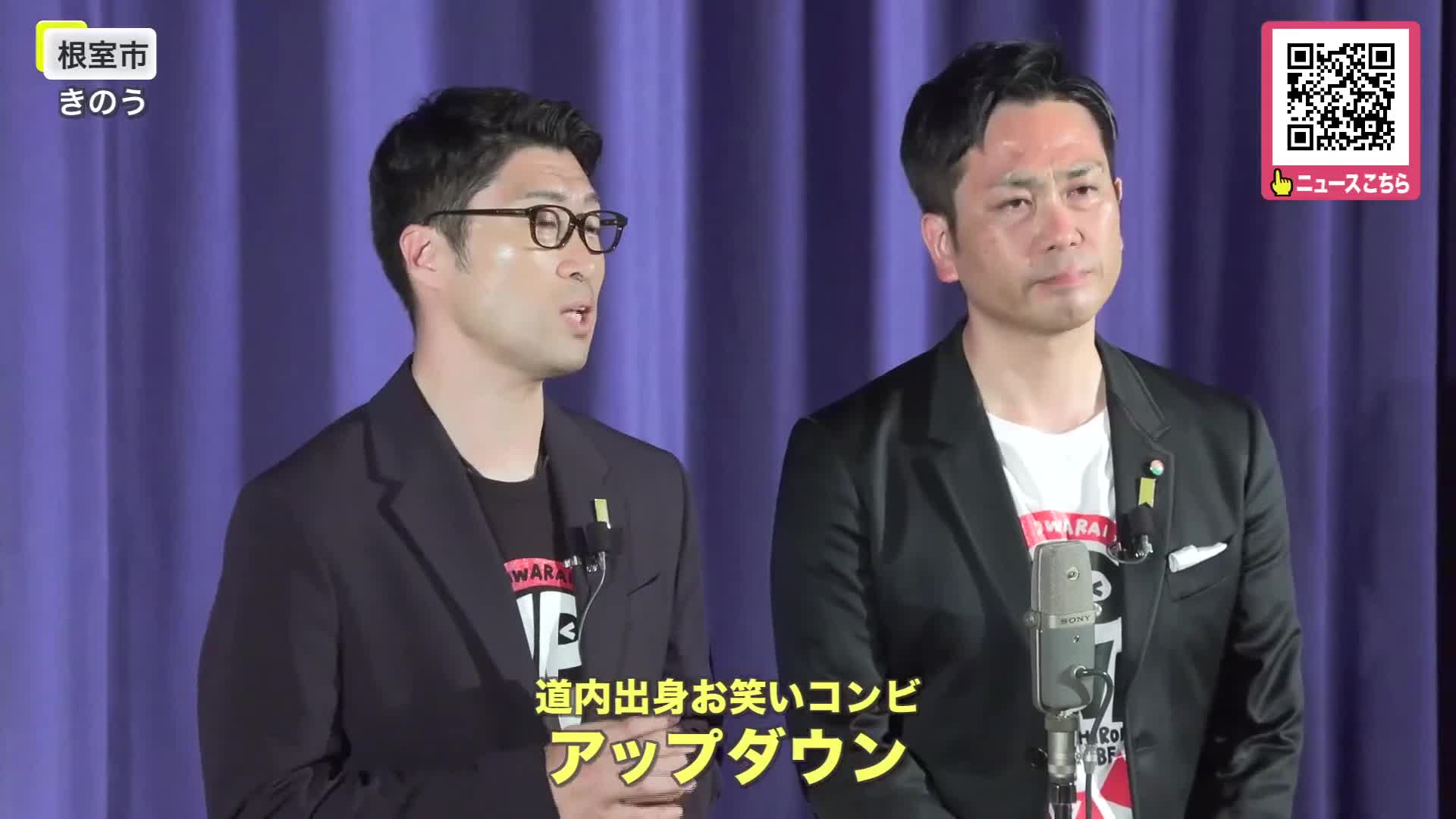 会場では道内出身のお笑いコンビ、「アップダウン」が新しい切り口で歴史を学ぶ「北方領土漫才」を披露。