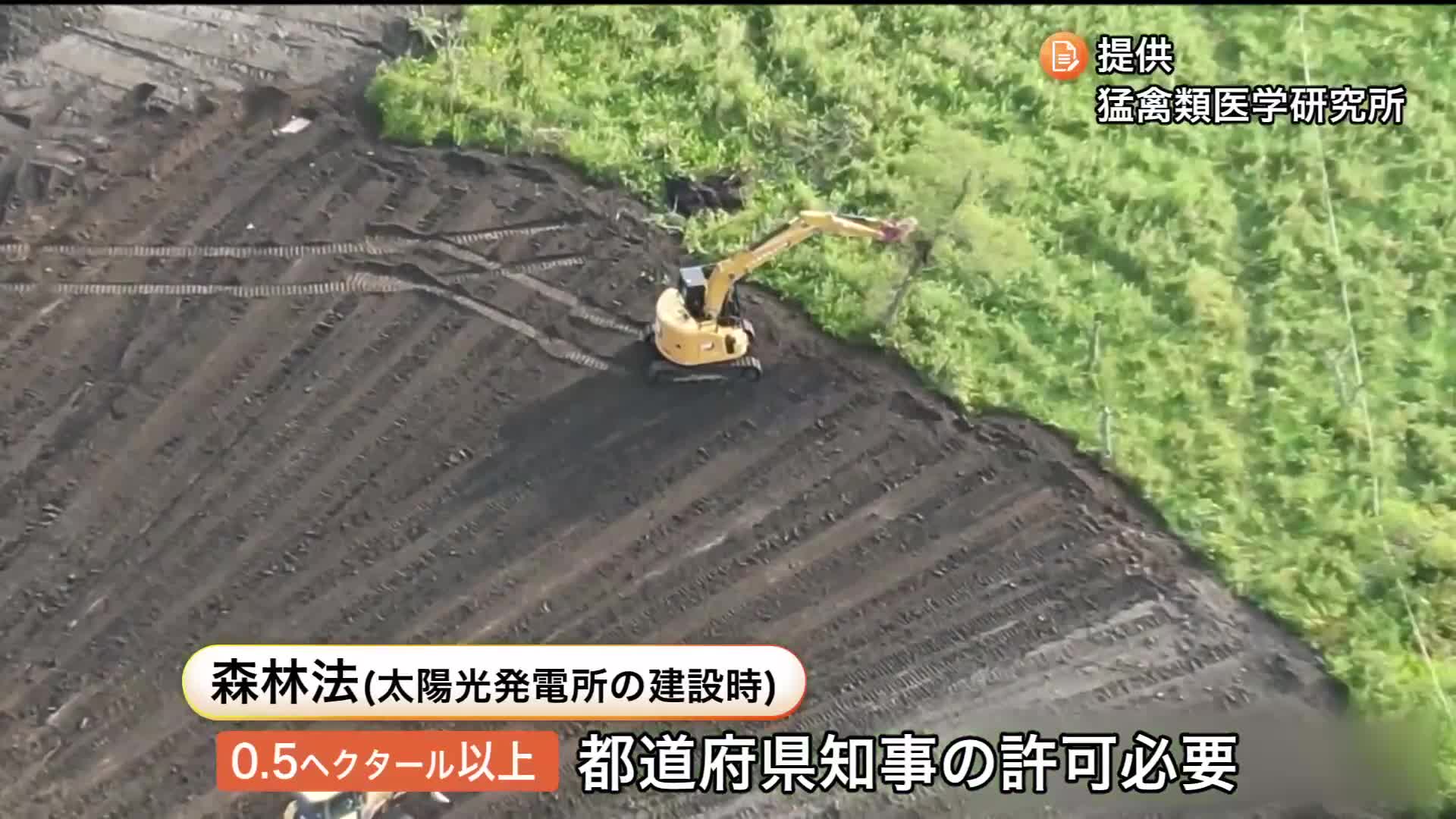 森林法では太陽光発電所向けの森林の開発面積が0.5ヘクタールを超える場合は知事の許可が必要で、日本エコロジーは約0.3ヘクタールと届け出ていました。