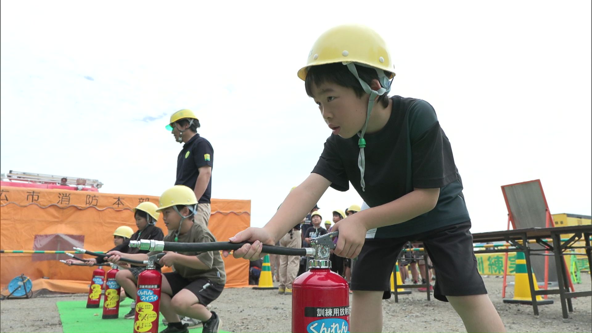 バケツリレーや水を入れた消火器による消火訓練も行われました。