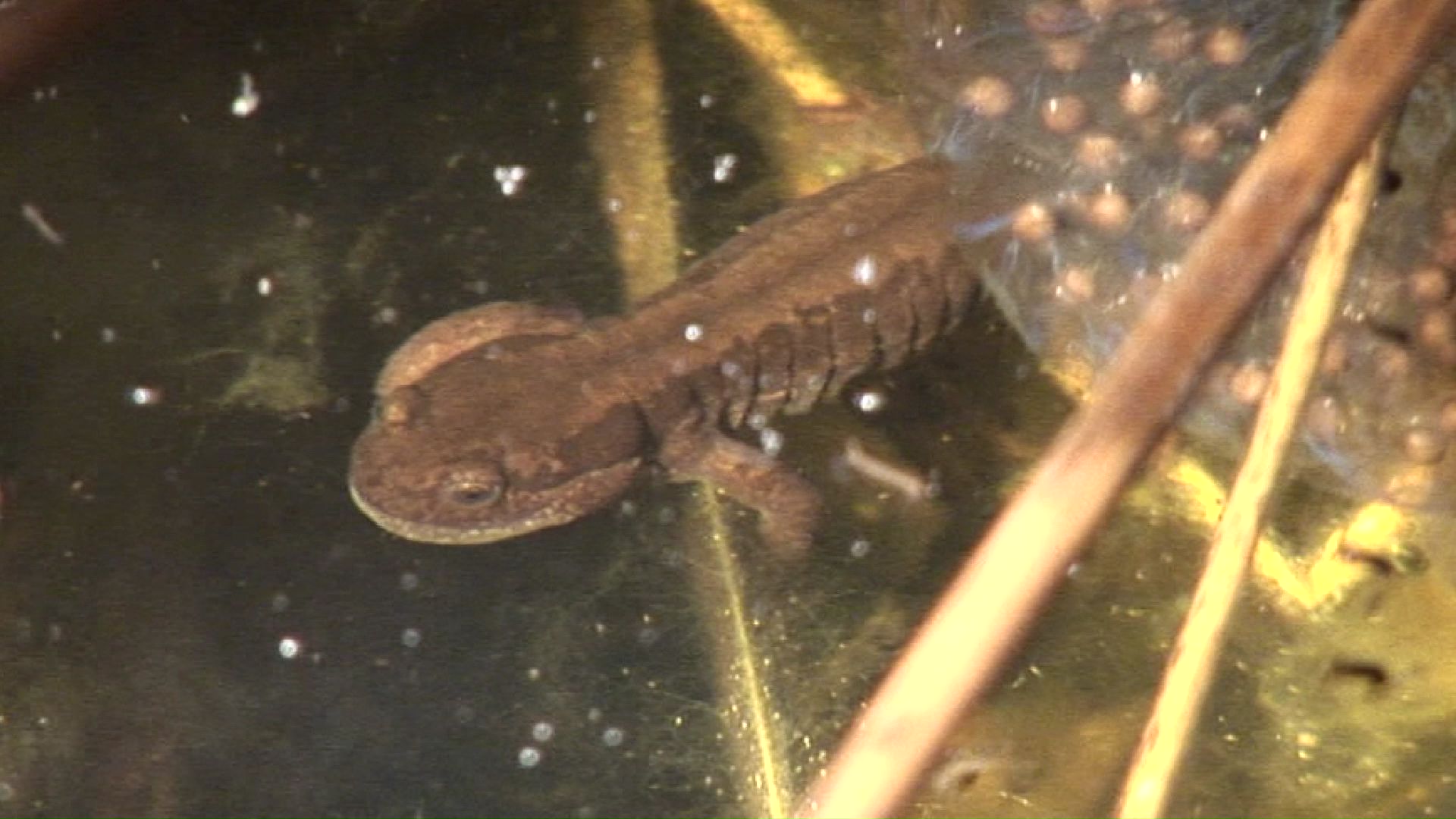 絶滅危惧種で、市の天然記念物のキタサンショウウオ。
