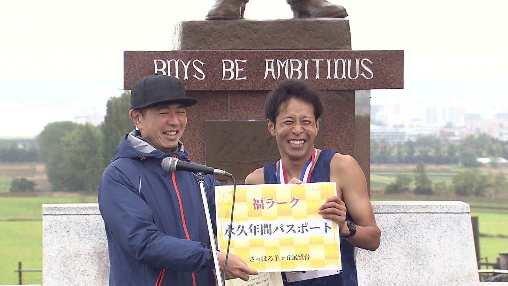 “クラークさんに向かって走れ”羊ヶ丘展望台入場ゲートから800m駆け抜ける『クラークダッシュ』2連覇達成の優勝者は展望台の永久入場無料パスポートをゲットで笑顔「3連覇目指して頑張る」〈北海道札幌市〉