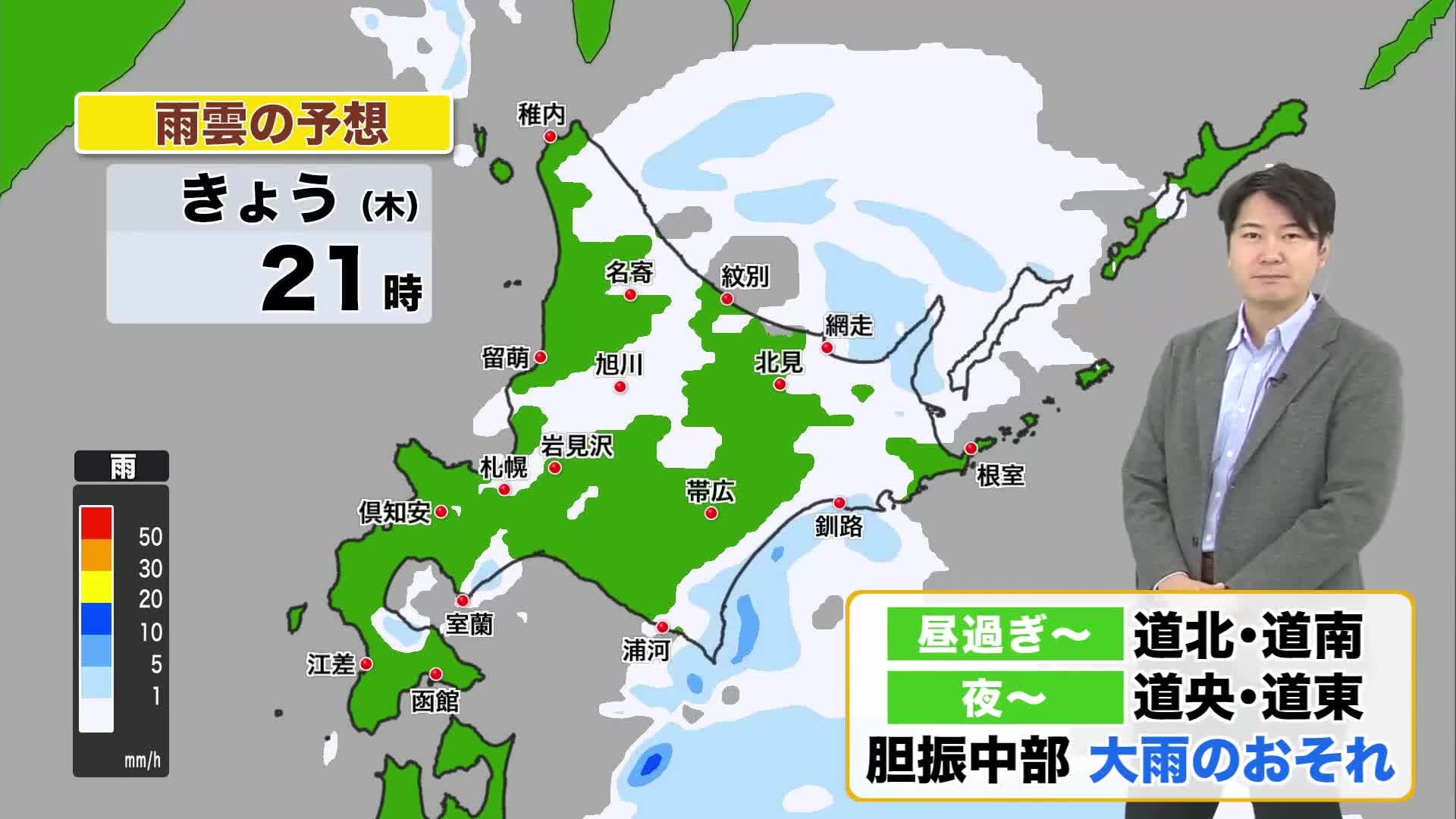 特に、胆振の山間部は雨が続き、局地的に大雨となるおそれもあります。