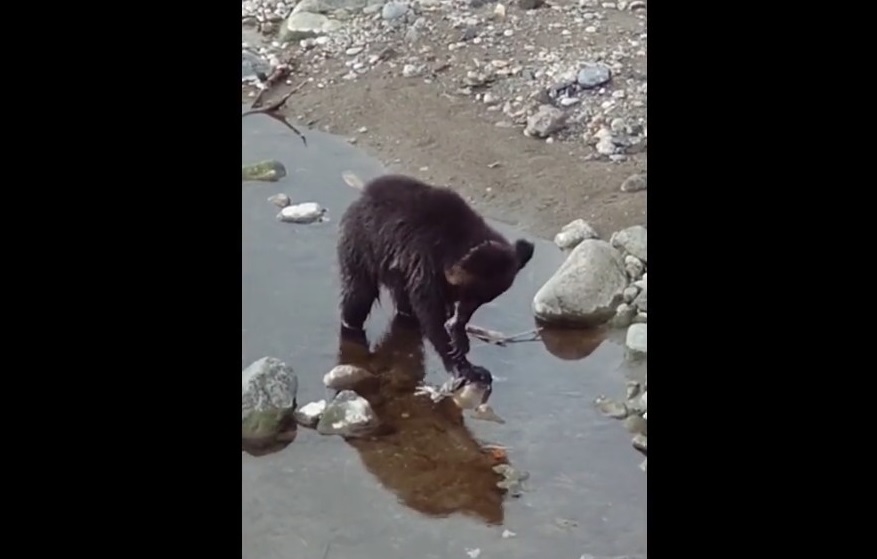 この1時間後には、町内の別の場所でも、サケを食い漁る体長約1.5メートルのクマが目撃されました。