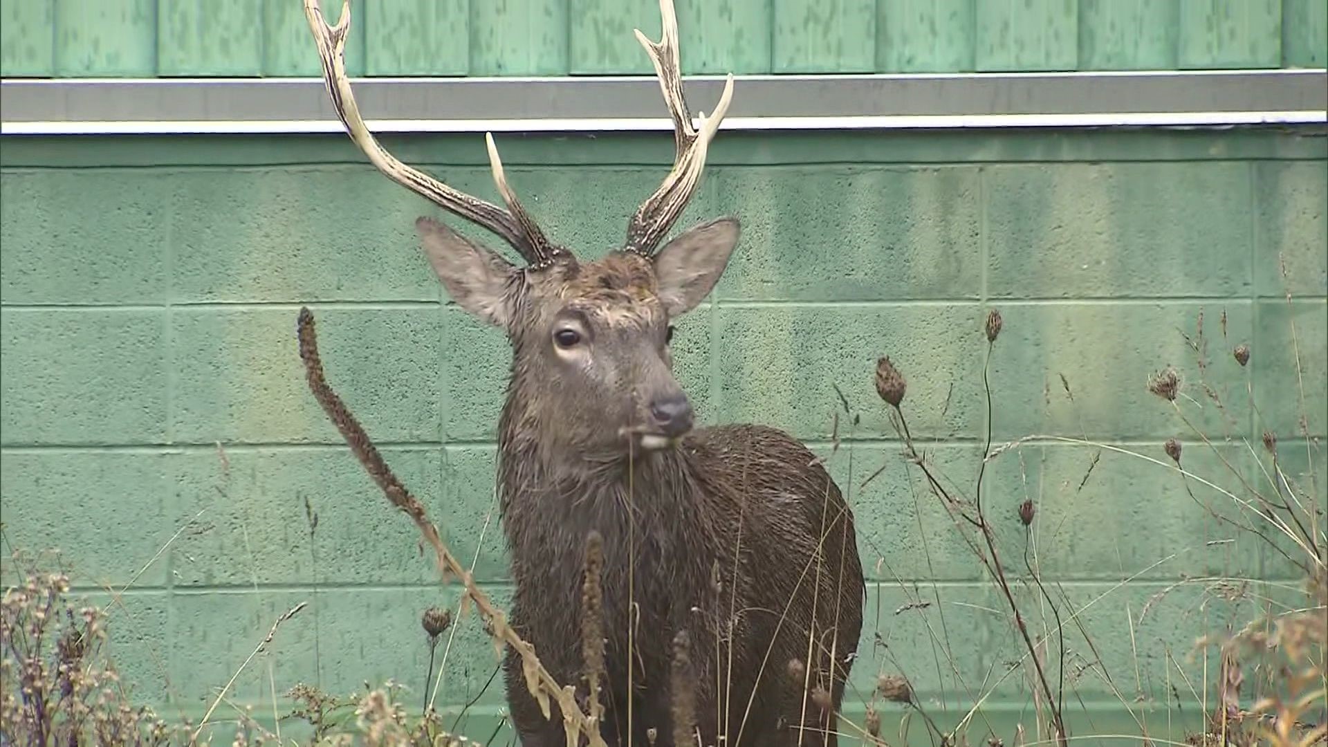 近くの住民などに話を聴きますと、「なんでこんなところに出るんだろう」「キツネはよく見るけど、シカは初めて」などと驚いていました。