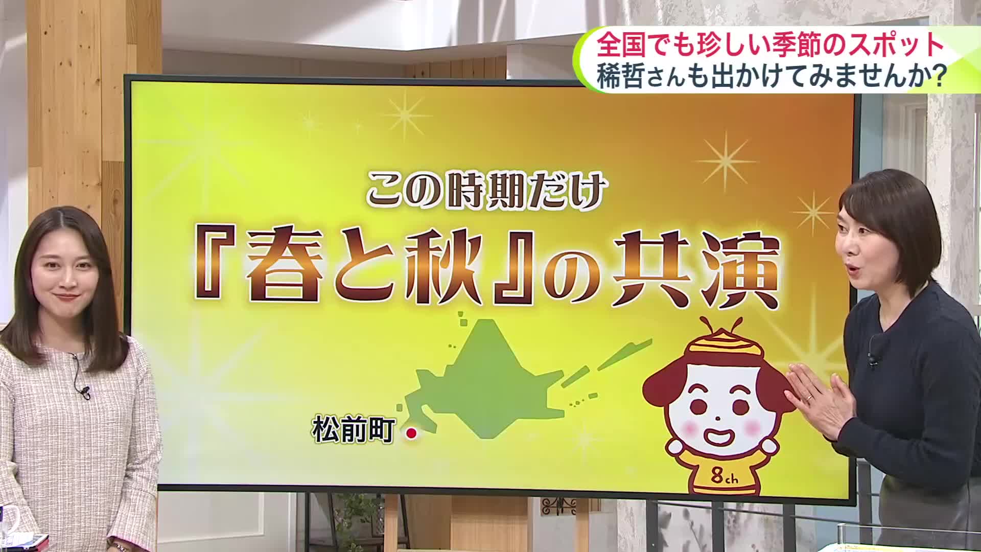 道南の松前町では、紅葉の色づきが進む中、桜も咲いています。