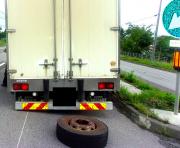 外れたタイヤのうち1本は、大型トレーラーの右側に衝突し、車体が凹みましたが、運転手にケガはありませんでした。