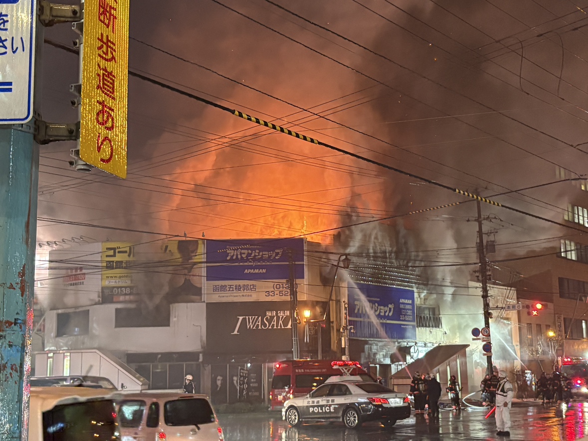 【最新映像あり】見通しが悪くなるほどの“大量の煙”で現場は騒然…北海道函館市の繁華街「五稜郭エリア」で起きた建物火災で懸命の消火活動が続く…火災の影響で「シエスタハコダテ」が臨時閉館