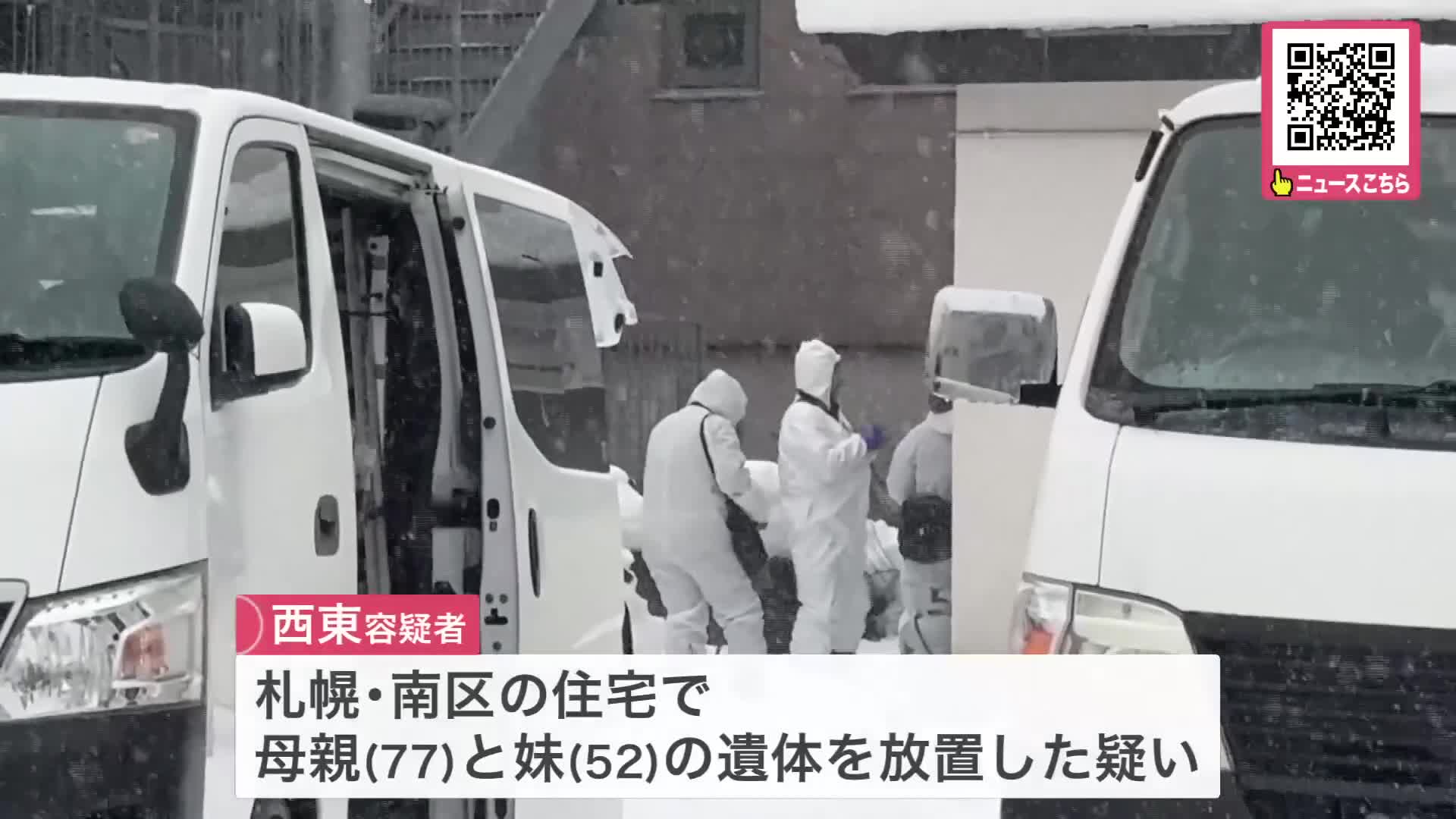 死体遺棄の疑いで逮捕された札幌市南区の会社員、西東英紀容疑者は、12月11日ごろ南区の住宅で77歳の母親と52歳の妹の2人の遺体を放置した疑いがもたれています。