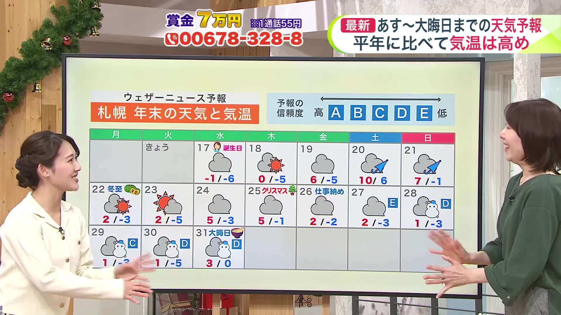来週も、12月としては全道的に気温が高く、