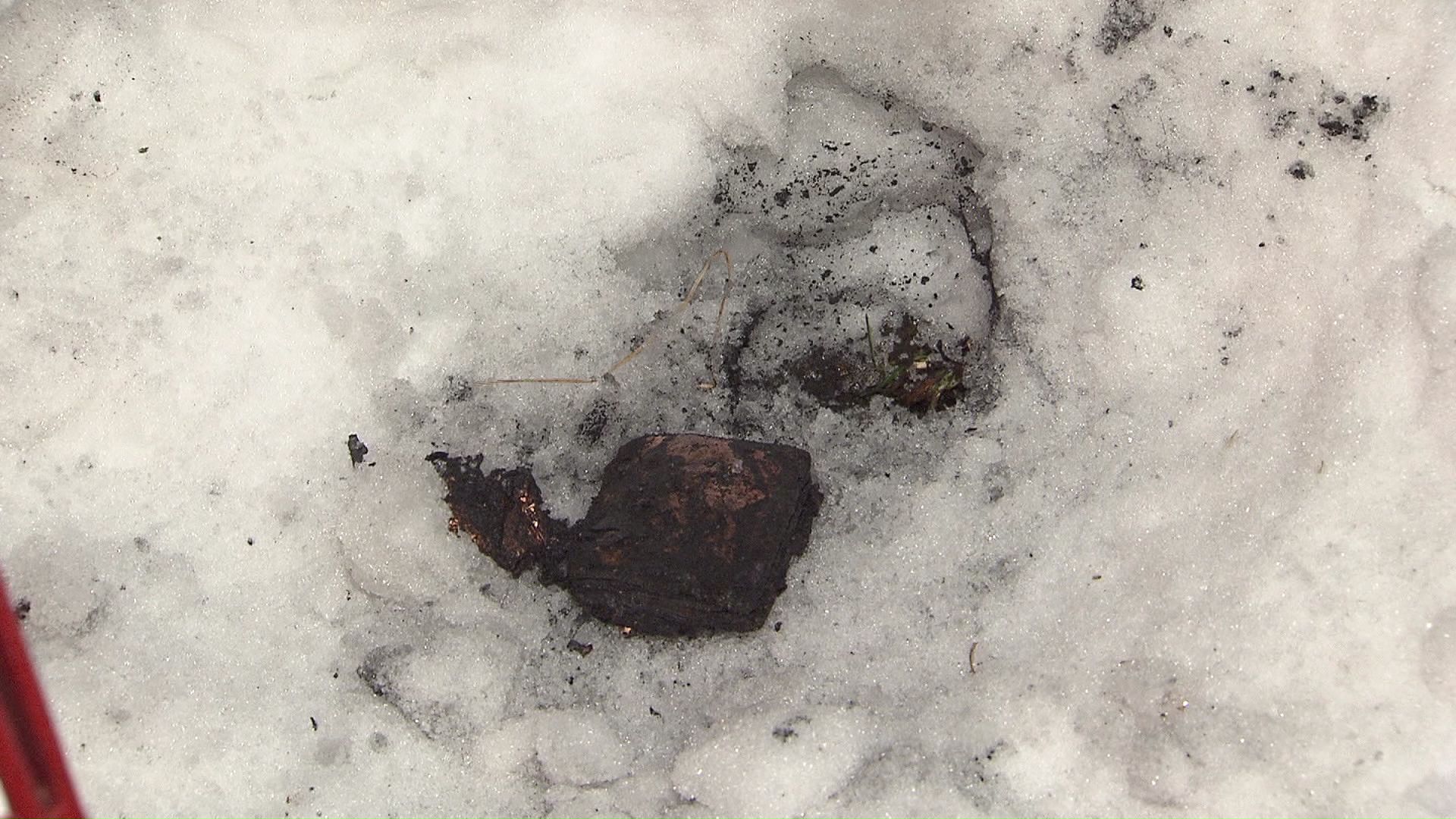 雪の上にはスマートフォンの充電などに使われるモバイルバッテリーが、焦げた状態で置かれていました。
