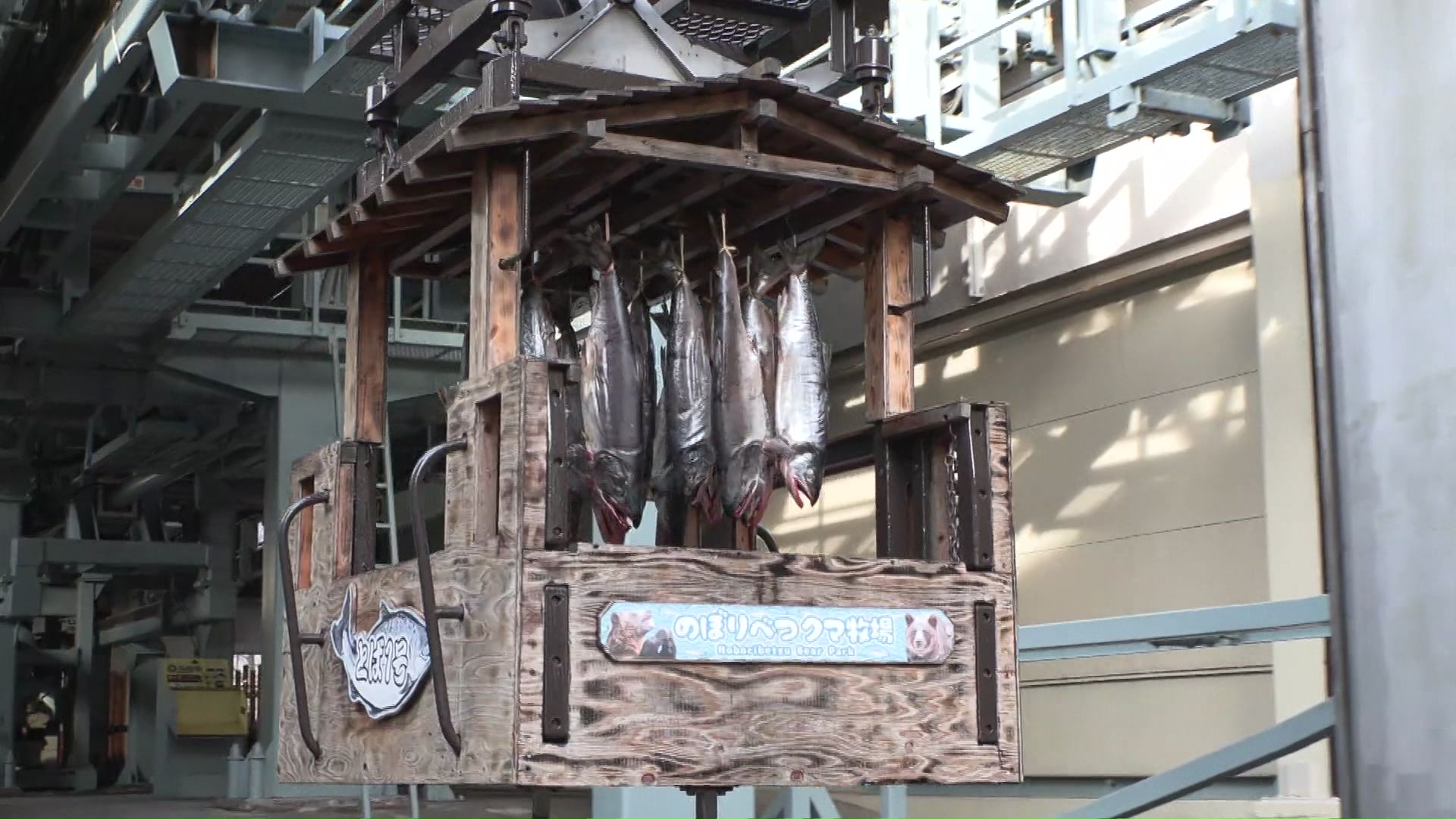ゴンドラに吊り"空飛ぶサケ"_登別クマ牧場の風物詩『とば号』秋サケ不漁により例年の半数で運行開始_完成したサケトバはクマの誕生日プレゼントに〈北海道登別市〉