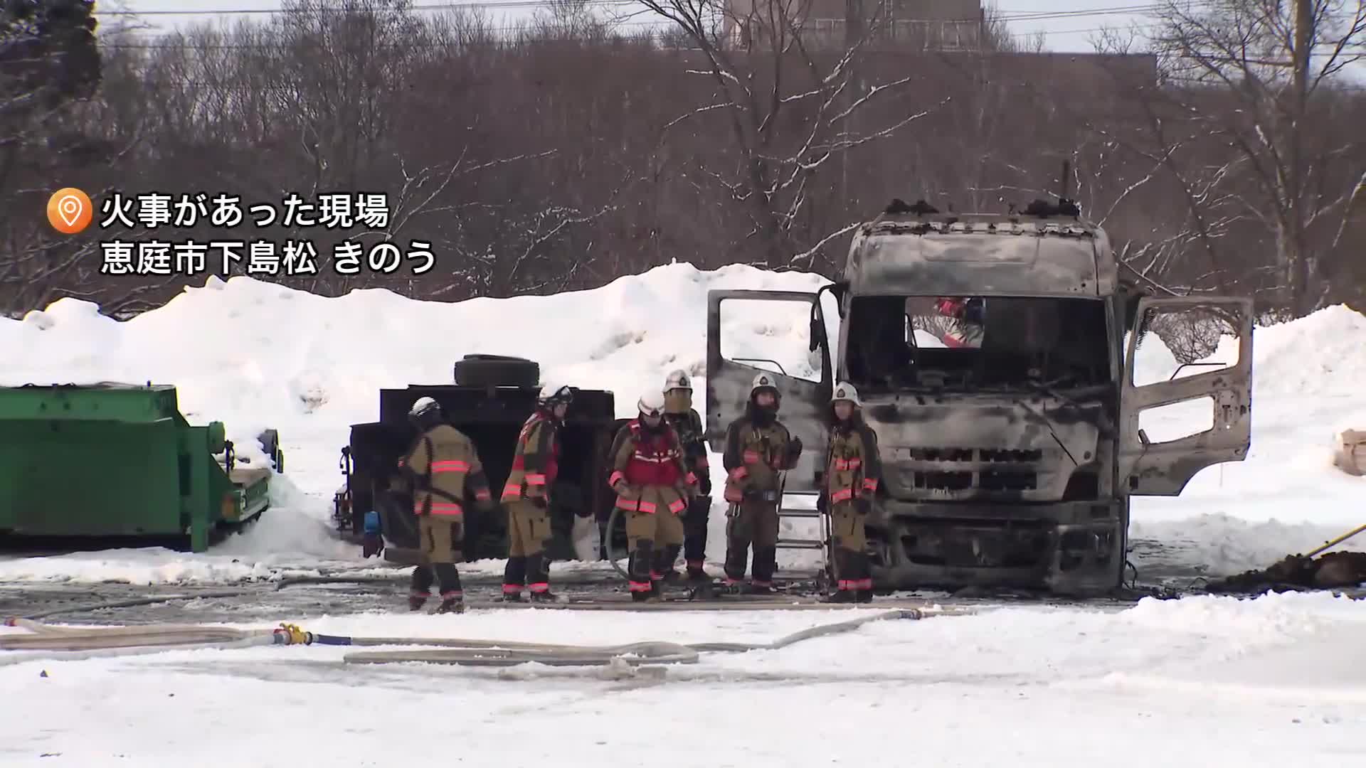 トレーラーヘッドが炎上したのは恵庭市下島松の除排雪業などを営む会社の車両置き場です。
