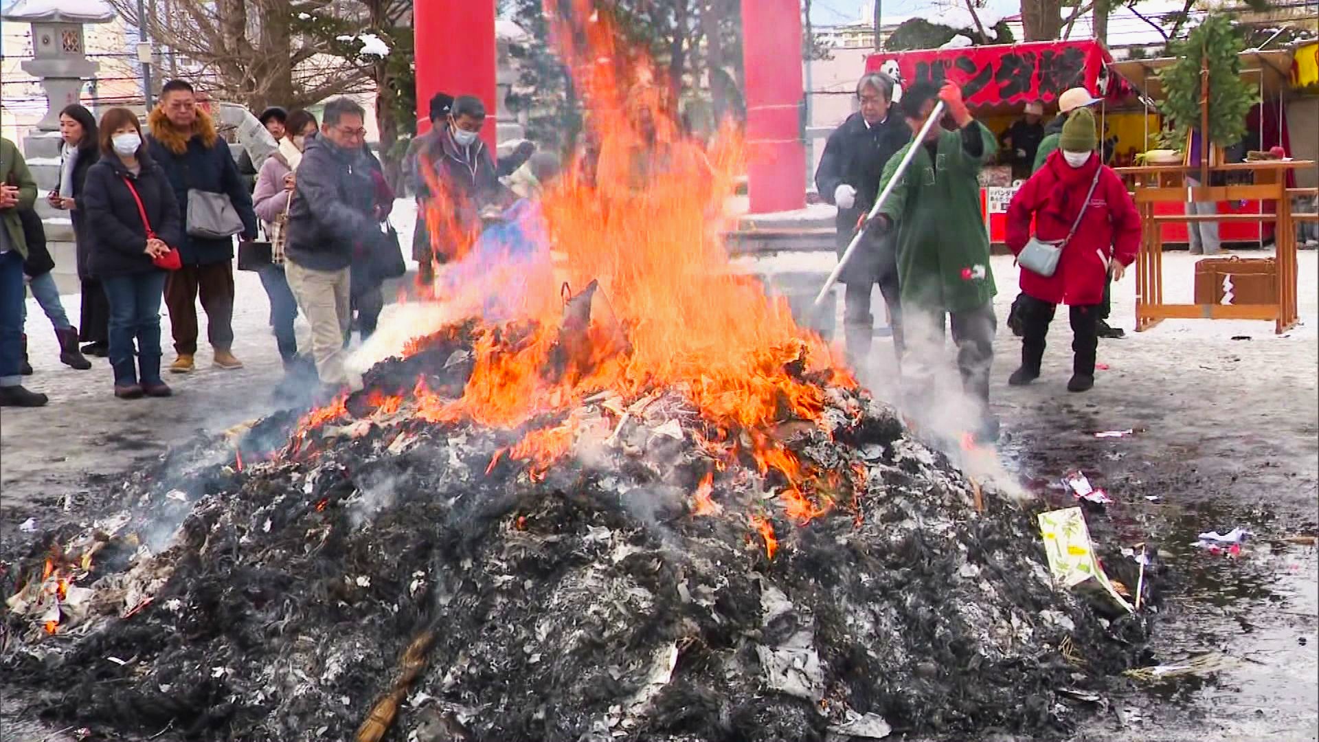 【無病息災願う「どんど焼き」で事故】正月飾りを投げ入れようとした70代ぐらいの参拝者が転倒→火の中に突っ込む…顔などにやけど負い病院搬送〈北海道・函館市〉