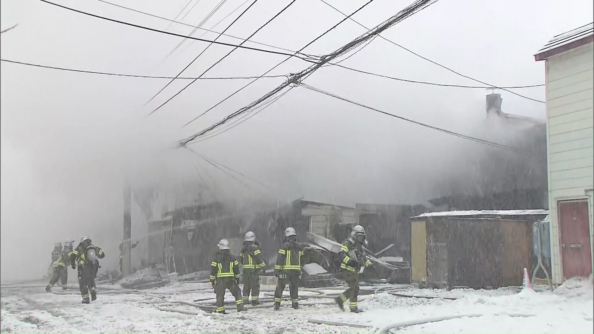 2026年1月7日夜、江別市の商店街で火事があり、少なくとも9棟が焼け、出火から12時間以上経った8日現在も消火活動が続いています。
