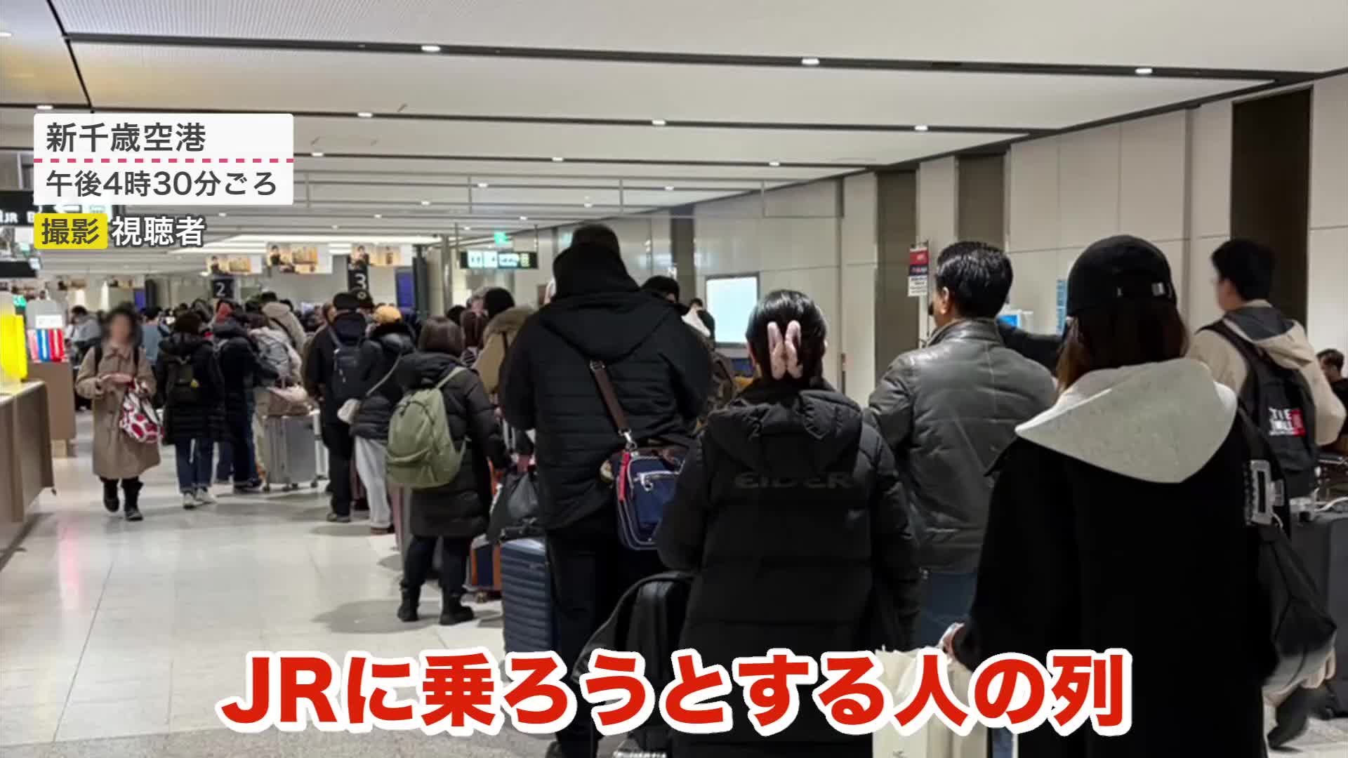 この影響もあり、新千歳空港では、JRに乗る人たちが乗り場がある地下1階から地上1階まで長い列を作りました。