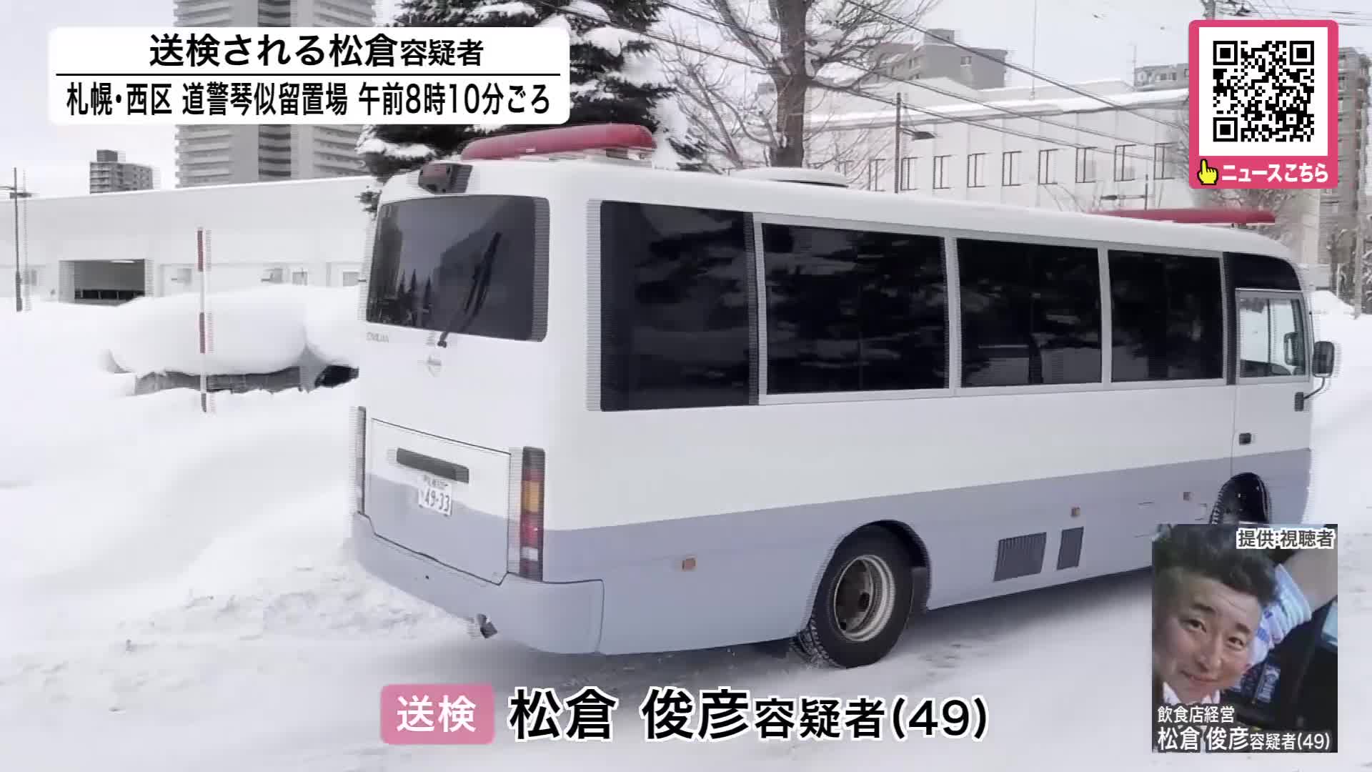 殺人の疑いで送検されたのは、日高町の飲食店経営・松倉俊彦容疑者です。
