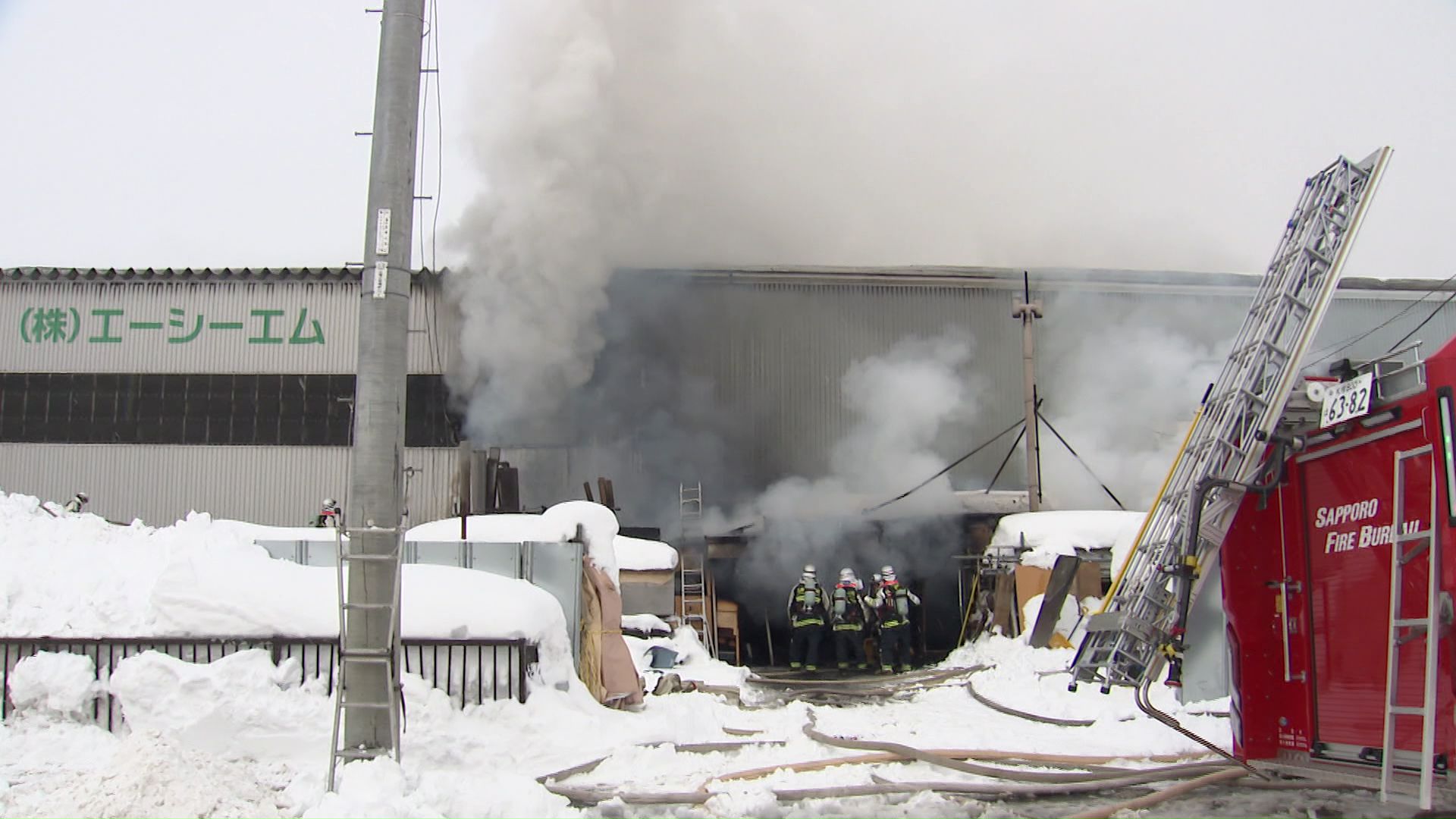 北海道札幌市白石区で2月1日正午ごろ、建設業者の物置や倉庫が燃える火事がありました。