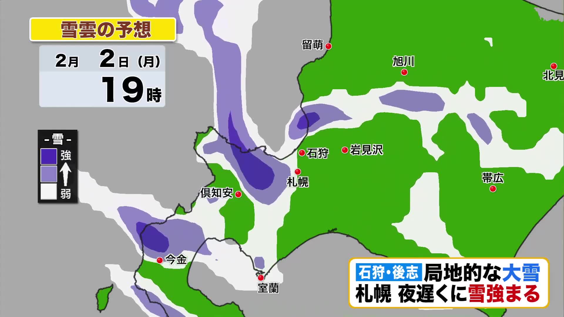 小樽は夕方から、札幌は夜から再び雪が強まるでしょう。