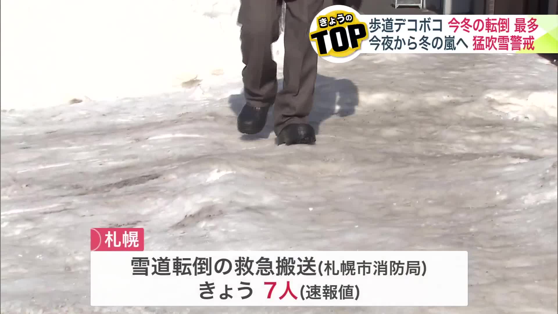 札幌市消防局によりますと、5日、雪道で転倒し救急搬送された人は速報値で7人に。