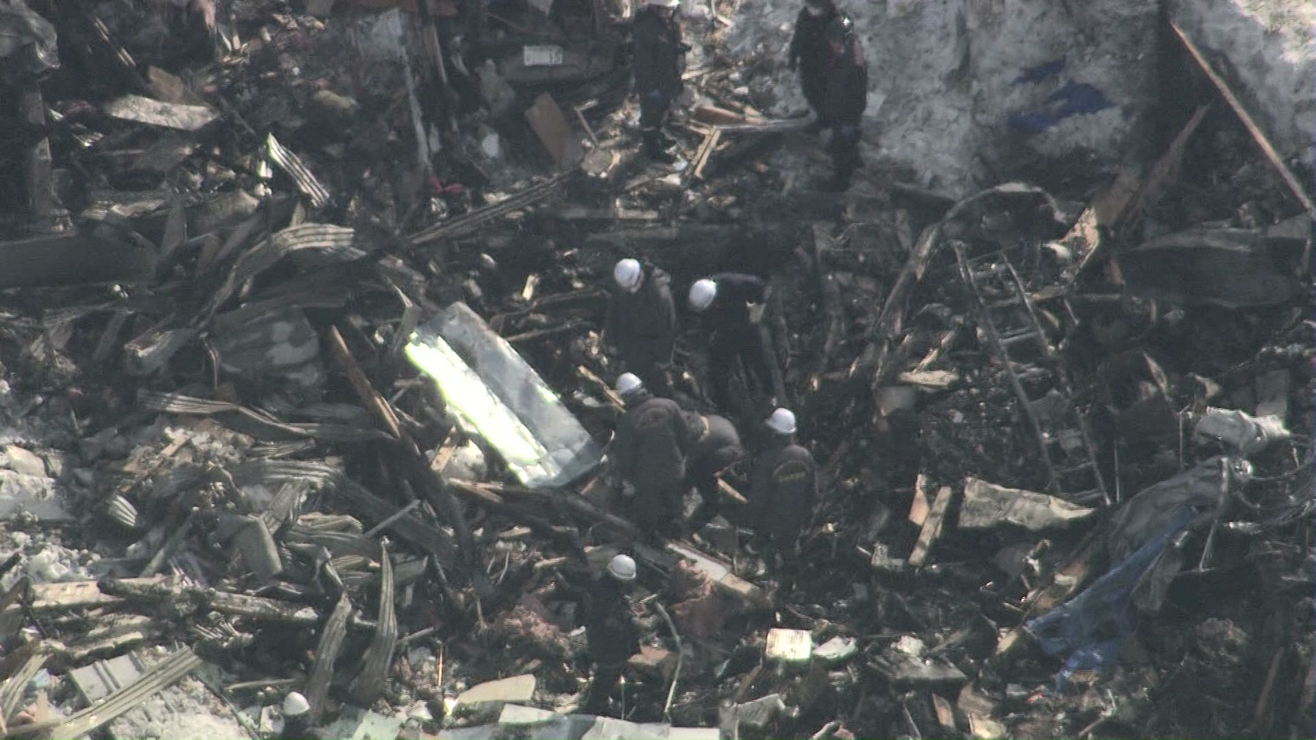 火元の住宅は跡形もなく吹き飛んでいて、家の中心付近の地中を調べていました。